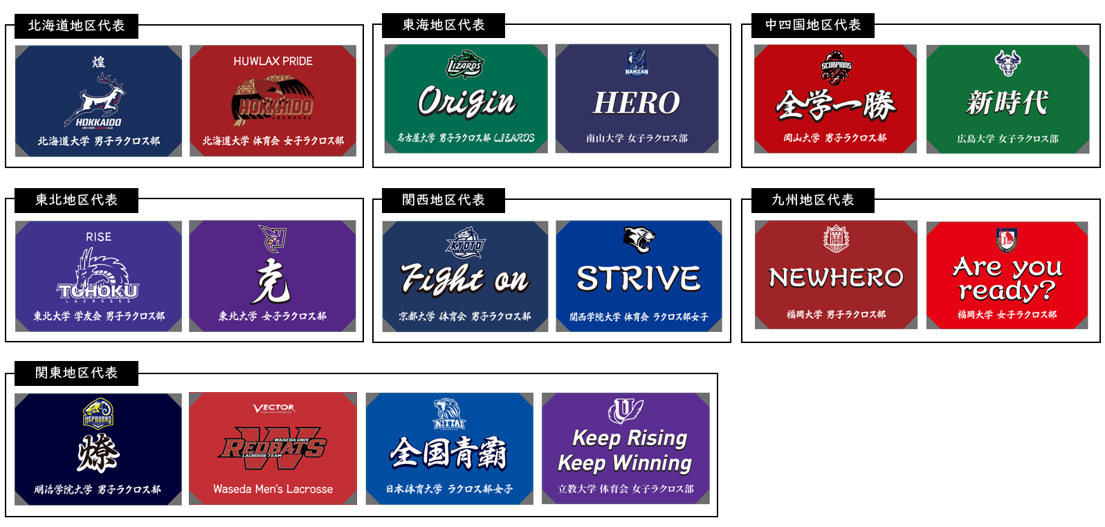 「ラクロス全日本大学選手権大会」は、北海道、東北、関東、東海、関西、中四国、九州の全7地区の学生リーグ戦優勝校、および前年度優勝校地区のリーグ戦準優勝校がトーナメント形式で戦い、大学日本一を決めるラクロスの全国大会です。優勝校は、来年行われる社会人クラブとの日本一決定戦「ラクロス全日本選手権大会」の出場権を得られます。