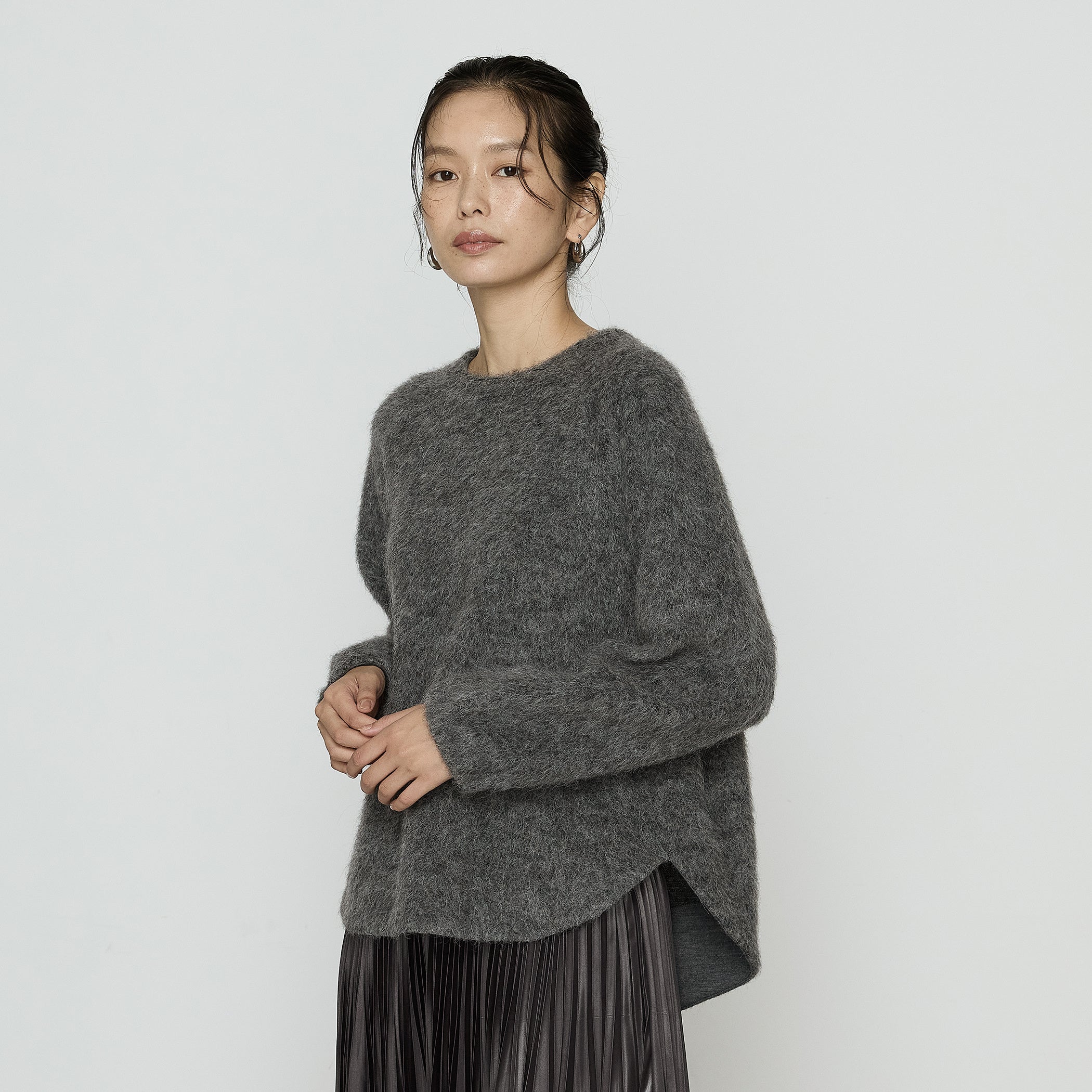 デザイン:リラックスとモードを両立したプルオーバーアルパカ混ジャージーの柔らかな素材感をいかし、包み込むようなビッグシルエットに仕立てました。