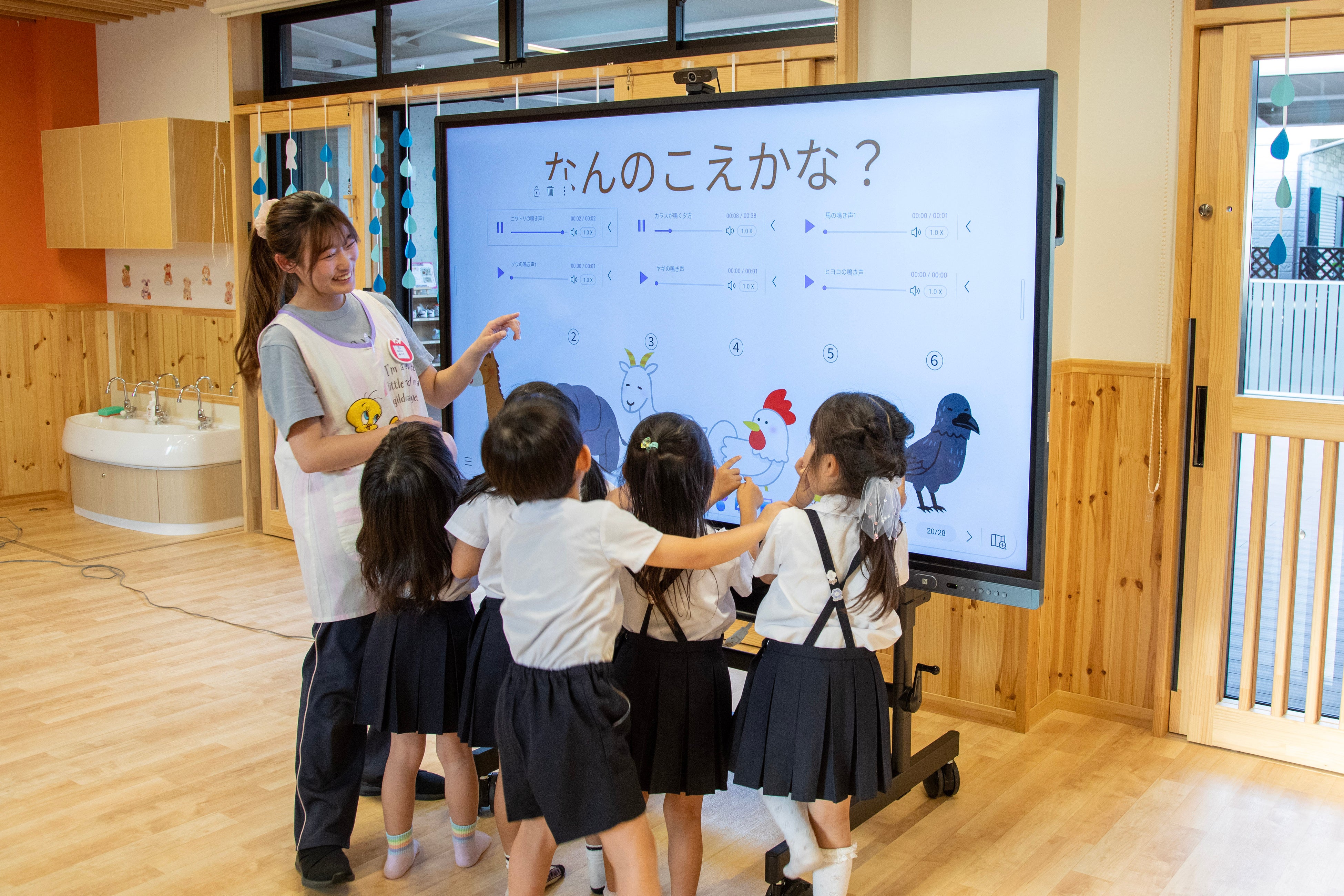 子どもたちの「なぜ?」「どうして?」という気持ちを大切に、調べたり話し合ったりしながら自分で考えて発見する力を育てる"探究学習"を実現する電子黒板「BenQ Board」を50園以上の保育園・幼稚園・こども園に導入しています。