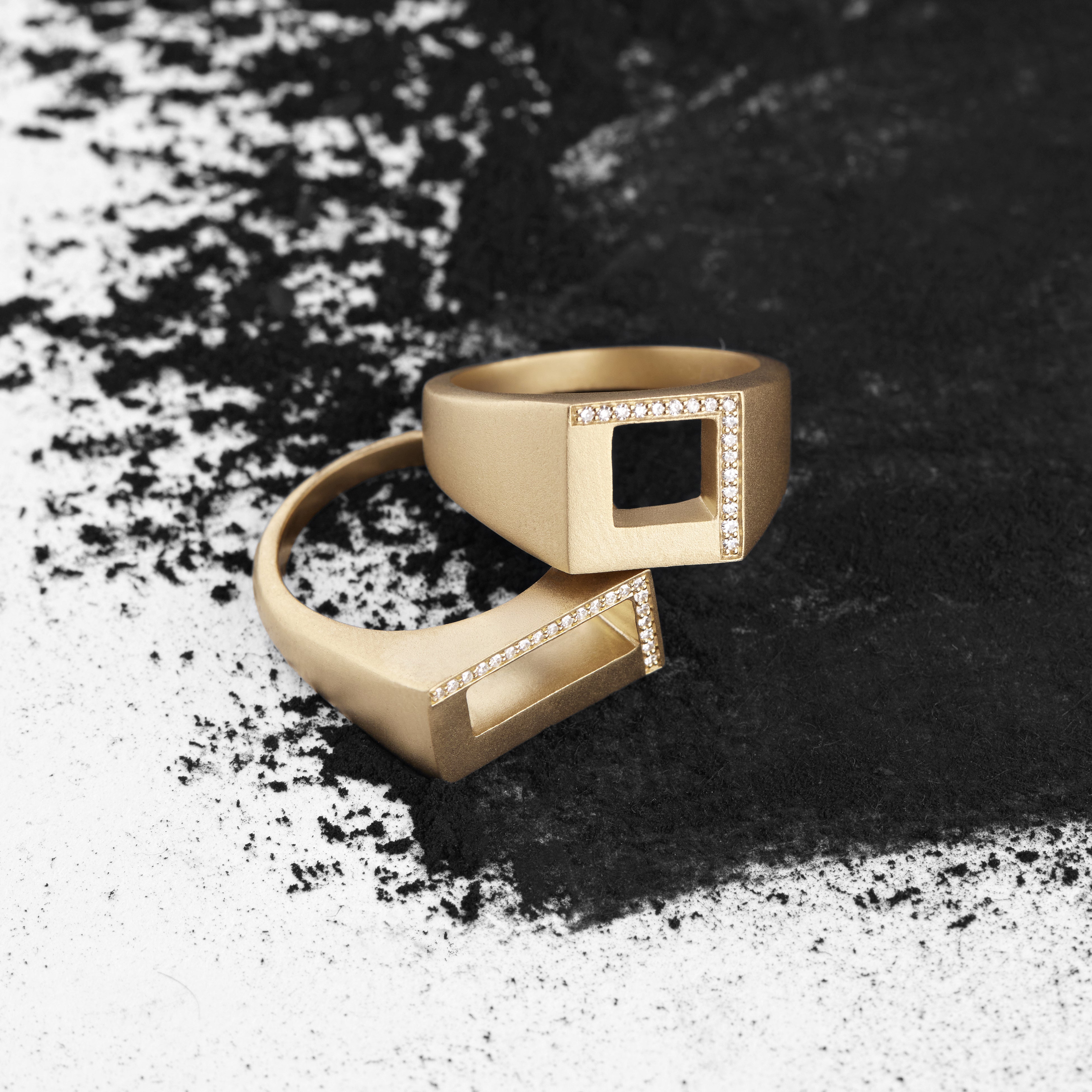 Chevalier Ring Carre(カレ)は人気のイニシャル、ダイヤのラインナップにエッジの効いたスクエアシェイプが新たに登場し、さらに一切の無駄を削ぎ落とした完璧なスクエアで、建築的で近未来的な美学を表現した18Kイエローゴールドリングも追加され、指先にモダンな強さを宿します。