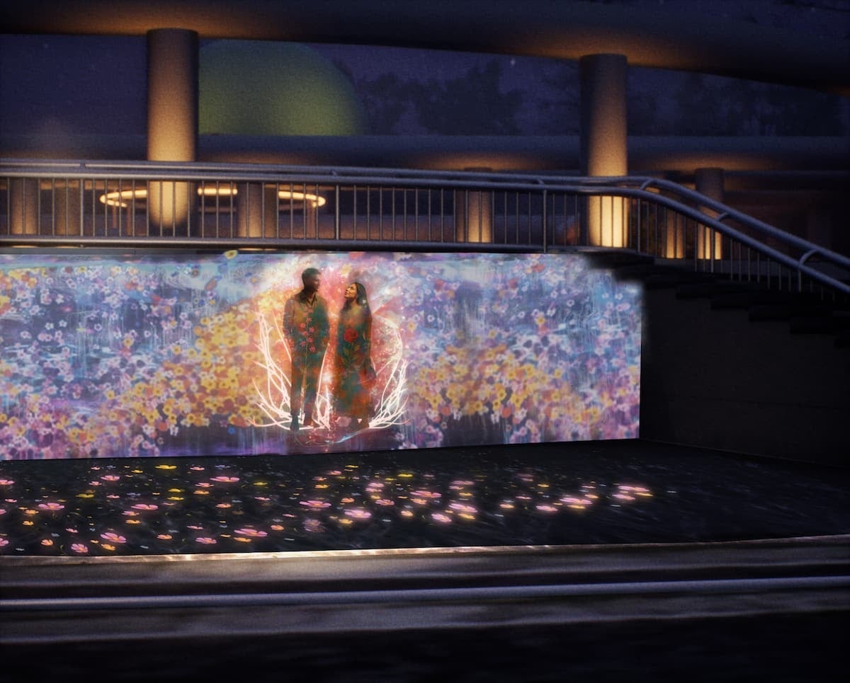 このエリアに設置されているフォトボックスで写真撮影をすると、あなたのシルエットが抽出され、そこに様々な花や花の色彩が重なります。