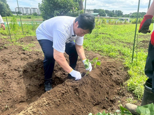 (写真は2025年6月、さつまいも苗植えの様子)