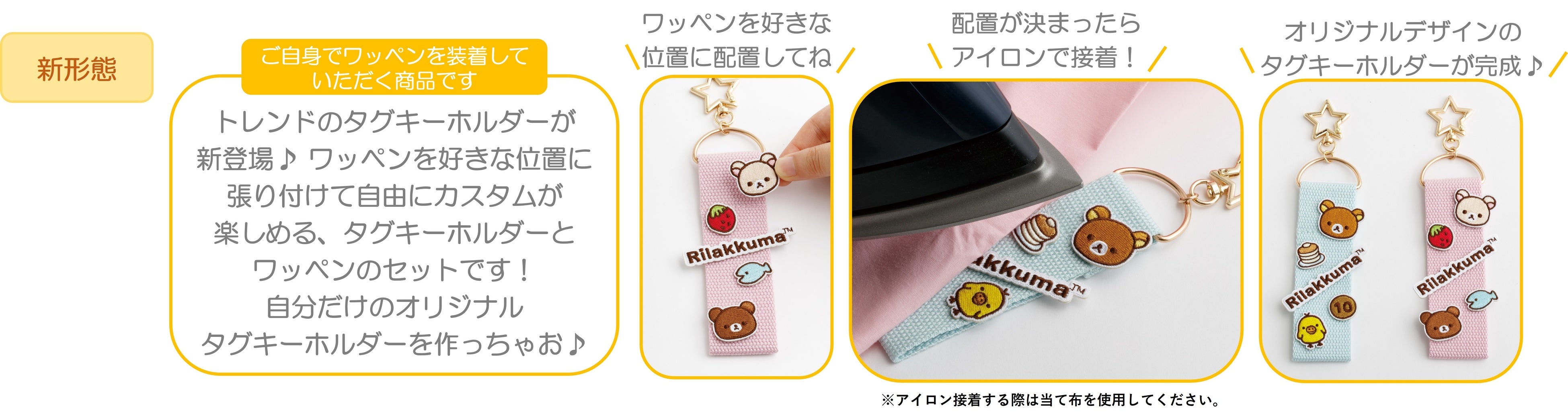 アイロン接着はもちろん、シールとしても使用できるワッペンをはじめ、ワッペンを好きな位置に張り付けて自由にカスタムが楽しめる、タグキーホルダーとワッペンのセットや、トレーディングカードやチェキを収納するのにぴったりなフォトカードキーホルダー、トレンドのワッペンがたっぷりついたデザインのポーチが登場します。