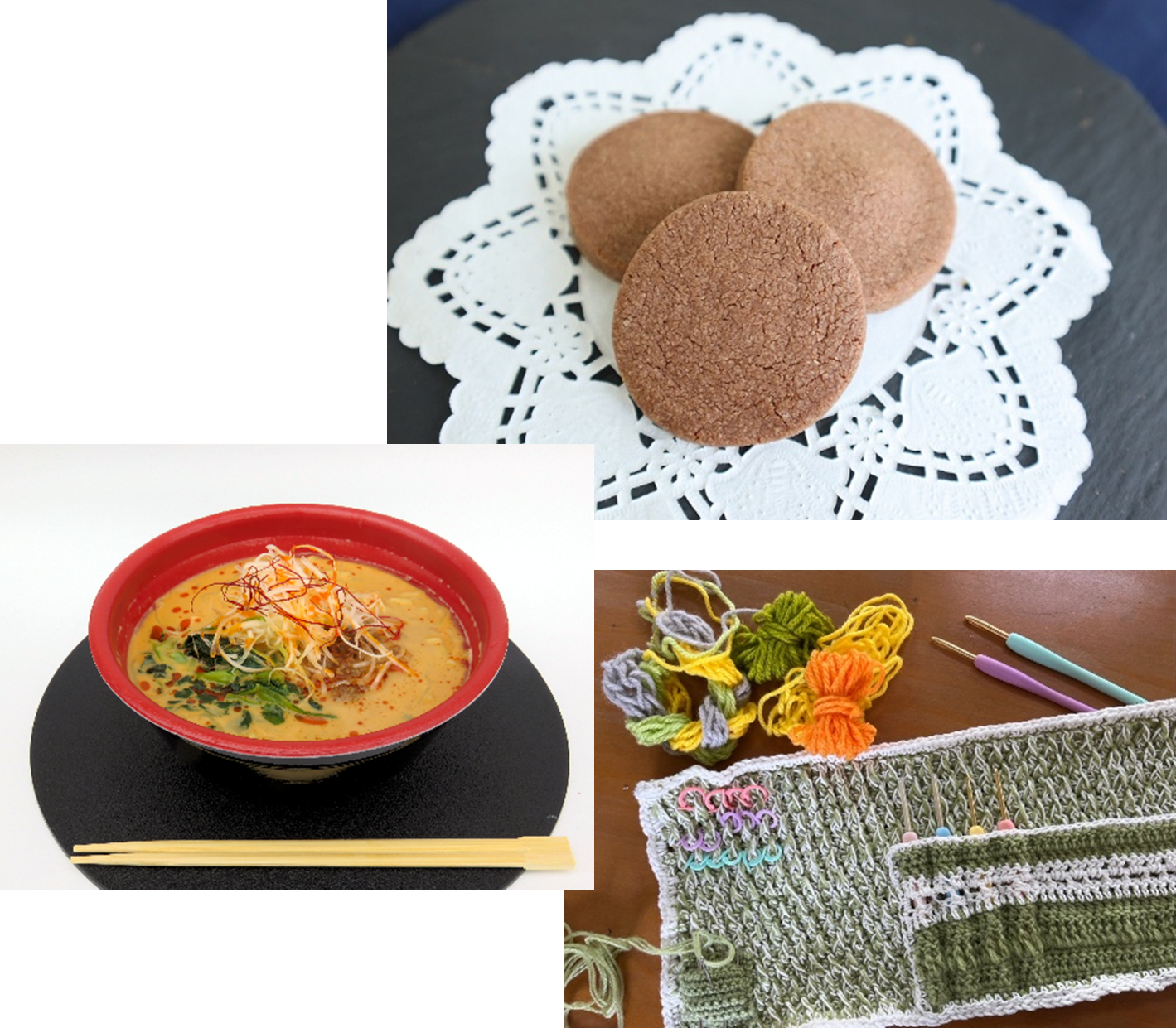 また、美作大学の4つの学生サークルが集まり、食とものづくりの魅力を届けます。人気の「みましょー担々麺」やクリスマス風ワッフル、津山産米粉を使ったチュロスの販売に加え、編み物雑貨の展示販売も。学生たちのまごころの詰まったマルシェをお楽しみください。