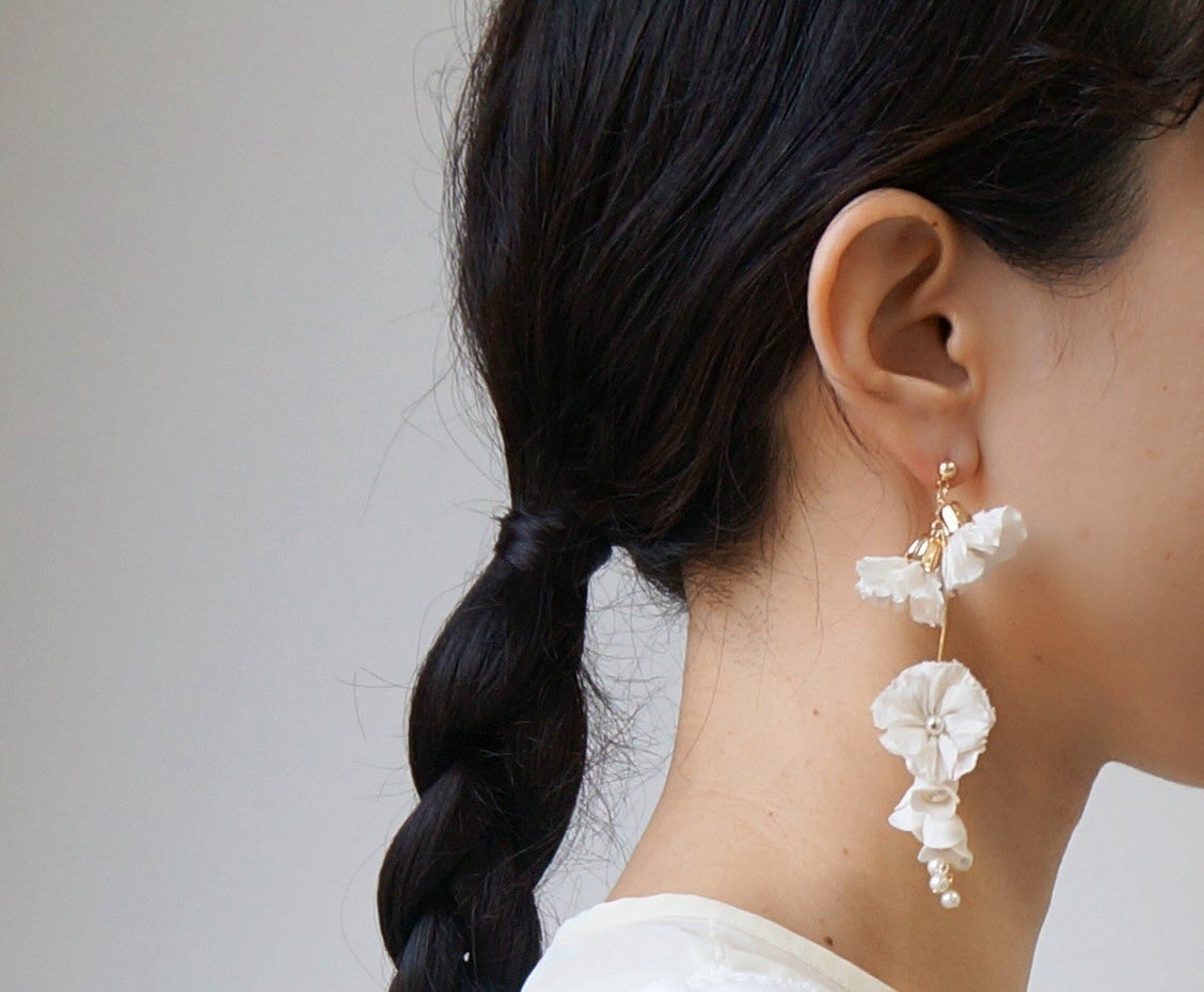 アパレルデザイナーが手がける、手染め布を使ったアクセサリー。ボタニカルで印象的なデザインはコーディネートのアイキャッチにぴったり。