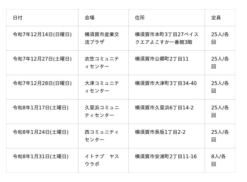 ・対象: 横須賀市内在住または在学の小学4年生~高校3年生