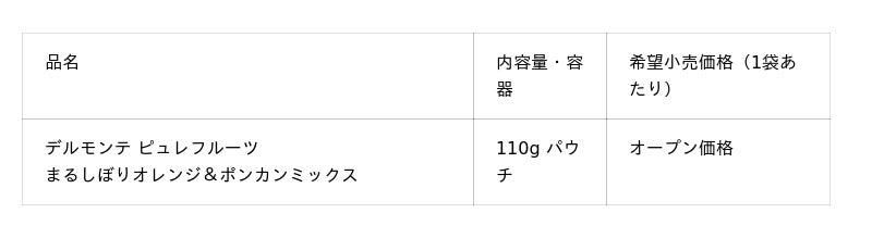 「デルモンテ ピュレフルーツ」シリーズ、累計200万袋(*1)突破!「まるしぼりオレンジ&ポンカンミックス」期間限定で新発売!~いつでもどこでも楽しめる!持ち運べるすりおろし果実!~