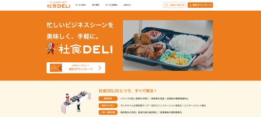 「社食DELI」はオフィス内の空きスペースを活用し、毎日多彩なラインアップのお弁当を販売スタッフの対面販売で提供する社員食堂サービスです。設備投資や在庫管理の手間を抑えつつ、働く環境の満足度向上に貢献しています。