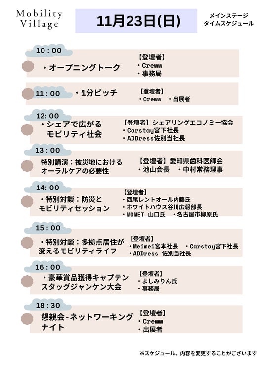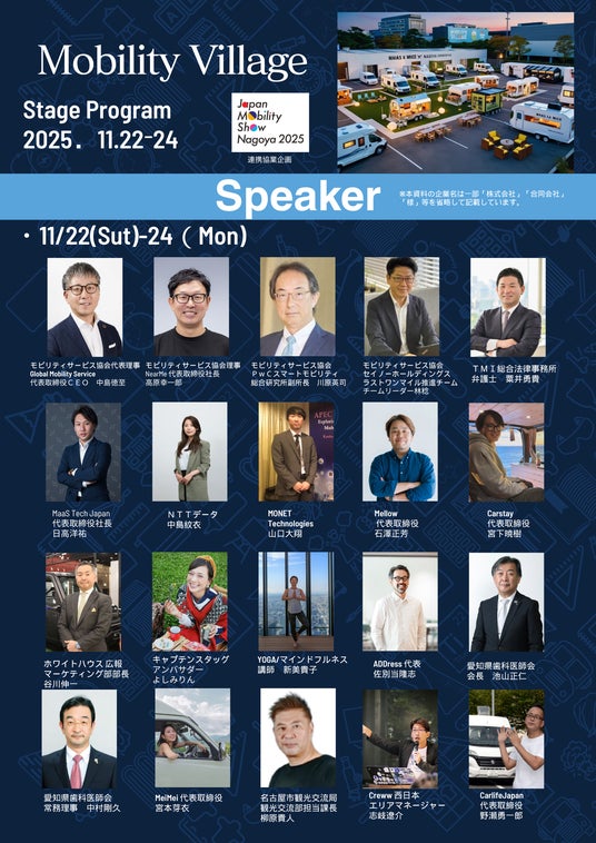 株式会社CarLifeJapan(本社:東京都港区、代表取締役:野瀬勇一郎)は Japan Mobility Show Nagoya 2025実行委員会(構成:中部経済新聞社、TOKAI RADIO、愛知県、名古屋市、日本自動車販売協会連合会愛知県支部)と協業して、 2025年11月22日(土)~24日(月・休)にポートメッセなごや(Japan MobilityShow Nagoya第2展示館東側・屋外特設会場)で実施する 「Mobility Village 2025(モビリティビレッジ)」の全容をご案内します。