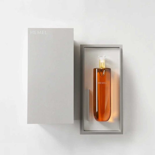 ひとつひとつ、職人の手で形づくられたボトルは、触れた瞬間に、静けさと緊張感がそっと伝わってくるような、凛としたたたずまい。香りと余韻をまとう姿は、HEMELの美意識を象徴するスタイルです。
