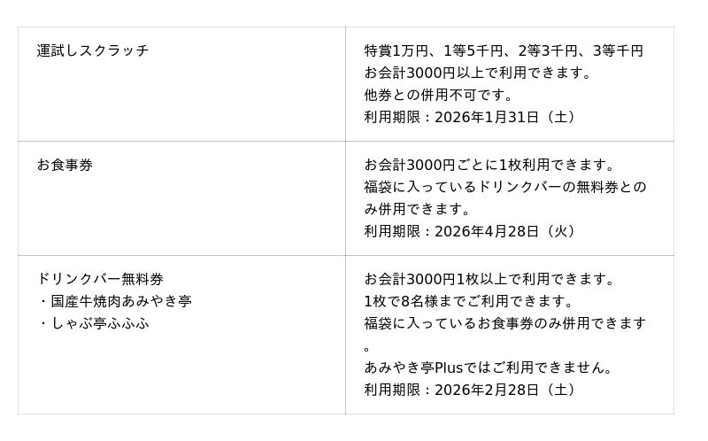 【あみやき亭中部 2026年福袋】内容 限定10,000個