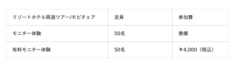 現在、ツアーの本格導入に向けた無料・有料の 体験モニター(合計100名)を募集中です。
