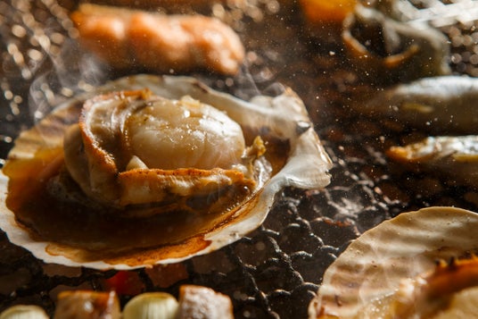 夕食は海鮮バイキング。旬の刺身や寿司、大人気の炉端コーナーではホタテやツブ貝などをご用意。