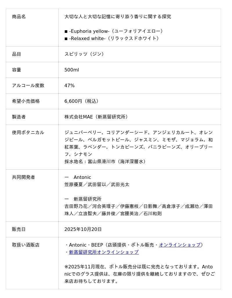 2025年10月発売 <本プロジェクト> 新蒸留研究所×Antonic