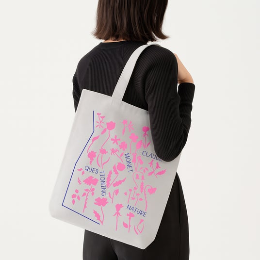 モネの庭をイメージした植物の描き下ろしイラストをあしらったオリジナルトートバッグで、デザインは 渡邉良重/キギ が手がけました。