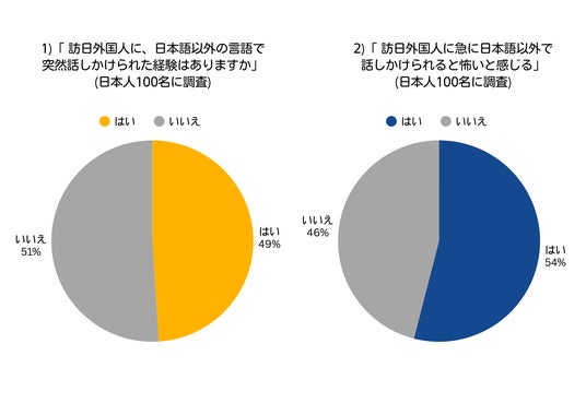 - 49%が外国人旅行者から、突然日本語以外で話しかけられた経験あり