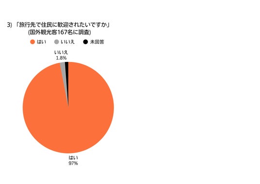 と回答しました。一方、外国人旅行者の97%が「旅先で住民に歓迎されたい」と答えています。