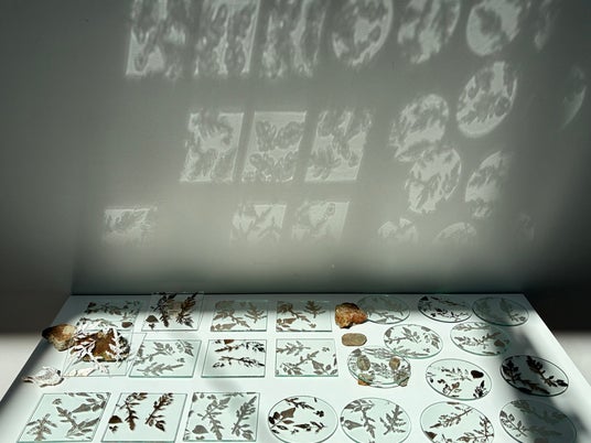 代官山の一角にある緑豊かで清々しい風の通る小道を舞台に、ログロードの木々をクリスマスの装いに仕立てました。実際にログロードに生えているカエデ・スモークツリーやメラレウカスノーインサマーの葉・足元のシダなどを採取し、それぞれの美しい形をログロードの植栽Log(記録)としてオーガンジーに 1 枚ずつ手刷りしました。華やかで繊細な植物のシルエットが、道を吹き抜ける風で揺れ動く姿をお楽しみください。