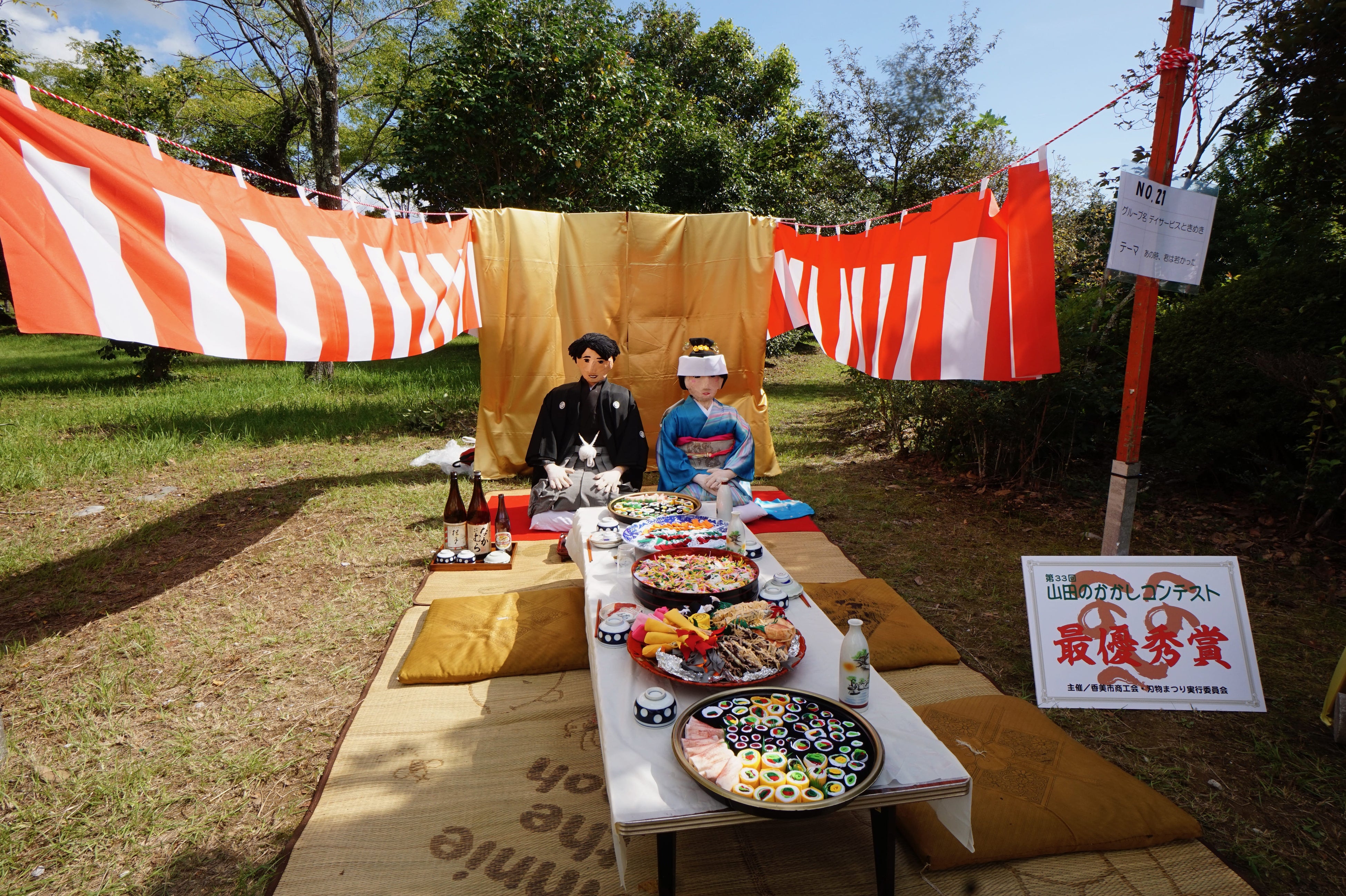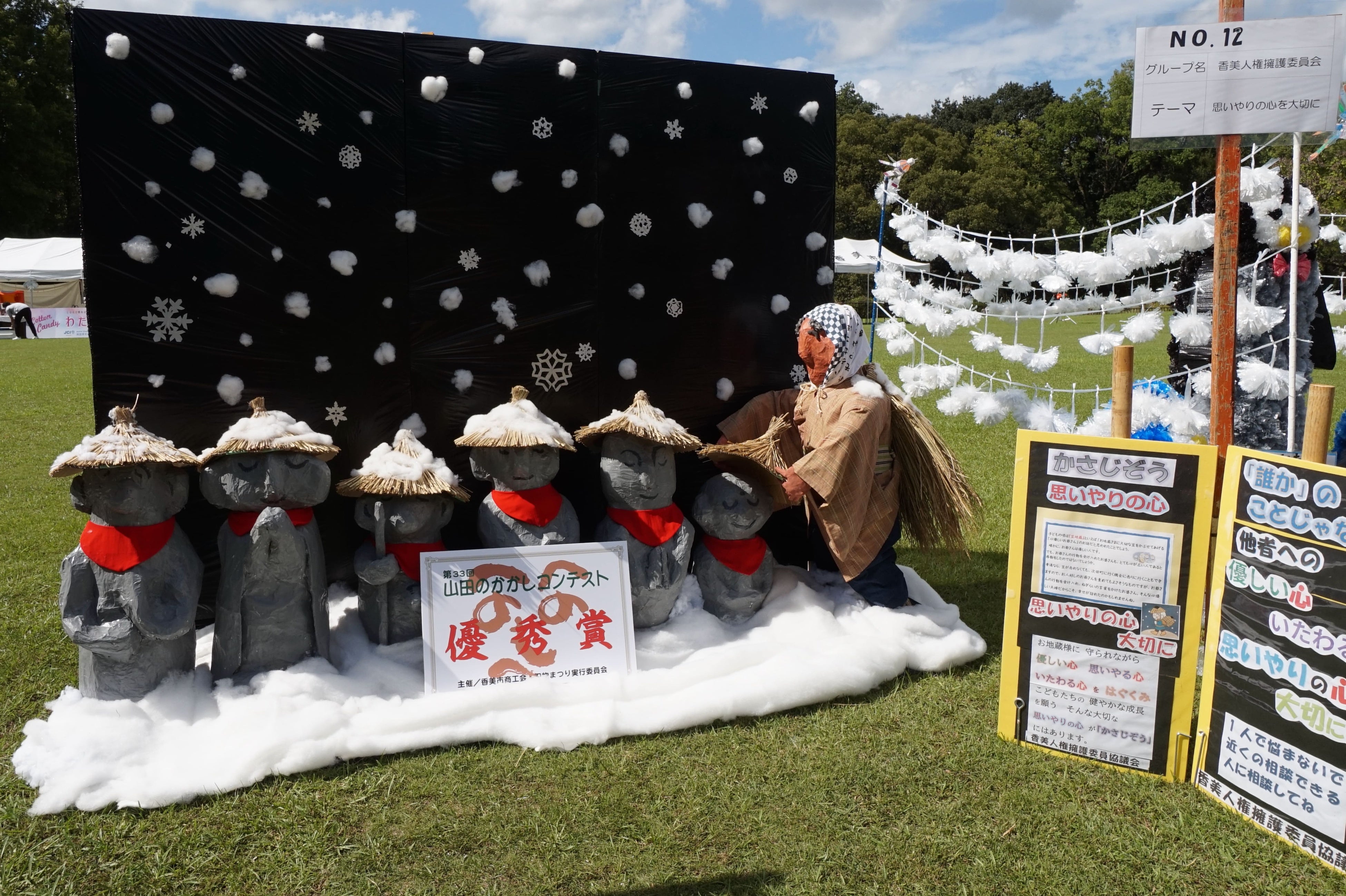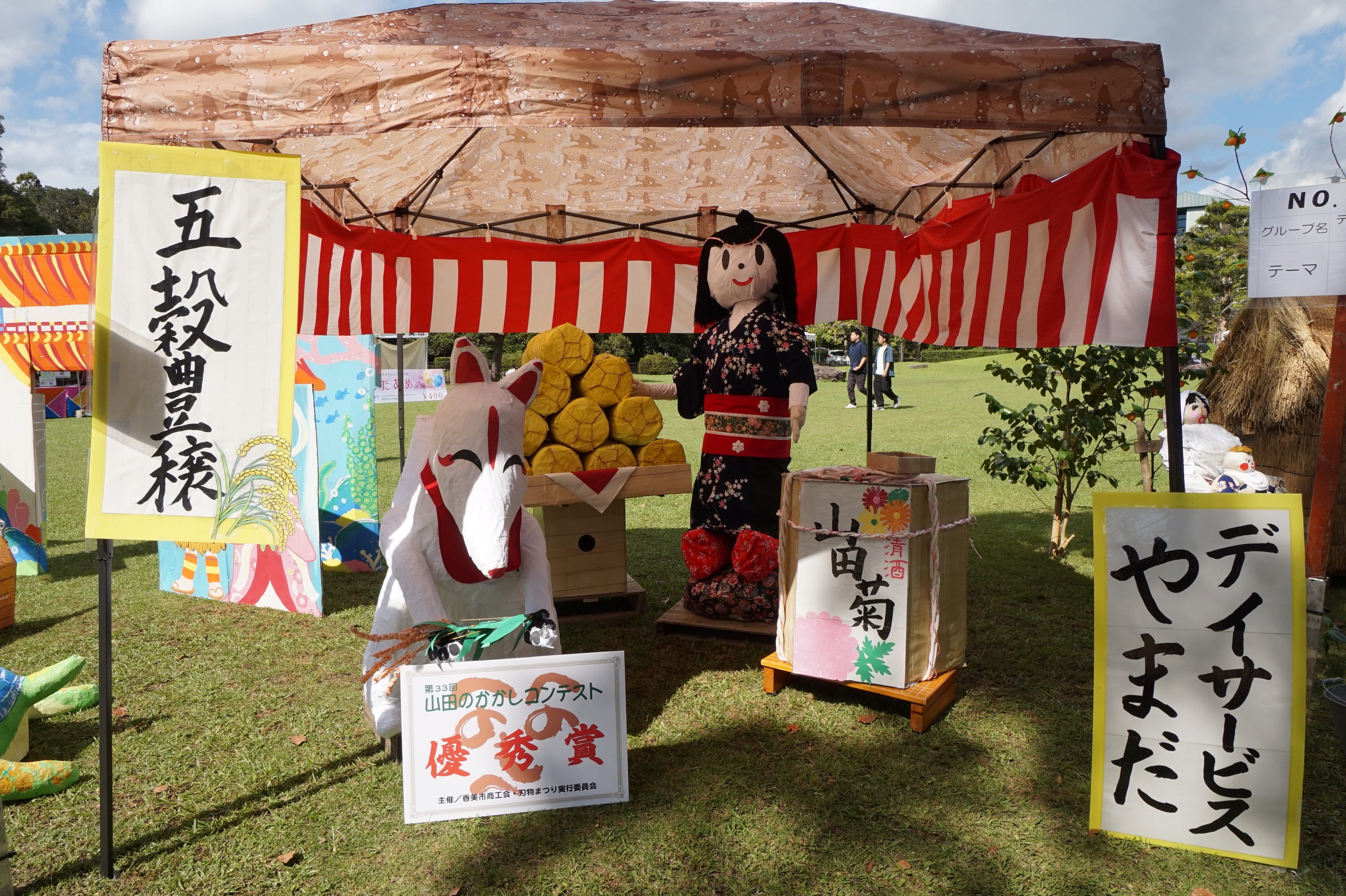 祭りのもう一つの目玉となっているのが「山田のかかしコンテスト」。個人や団体が製作した"かかし"が集うコンテストで、そのクオリティやアイデアは目を見張るものがあります。