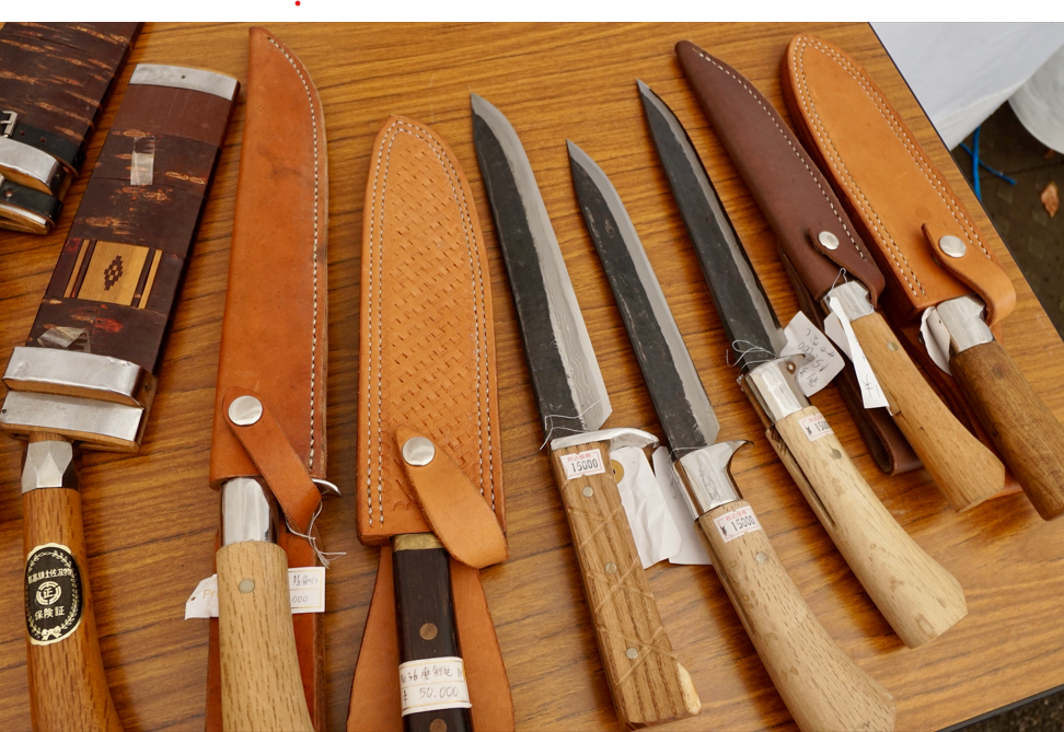 刃物まつりの目玉といえば、香美市をはじめとする県内の鍛冶職人が集まる刃物の展示販売会です。