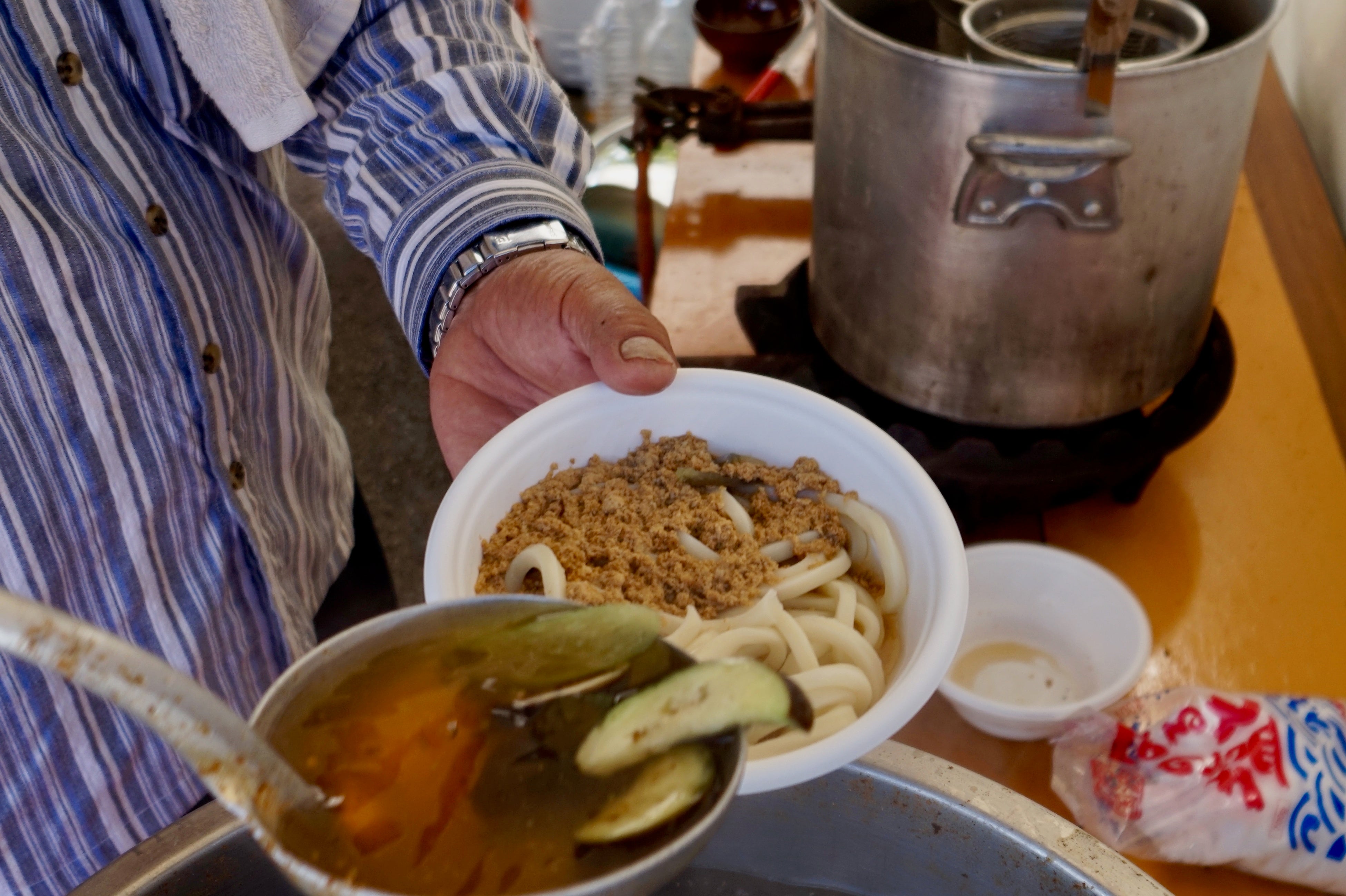 川に生息するツガニ(モクズガニ)のうま味が広がるうどん