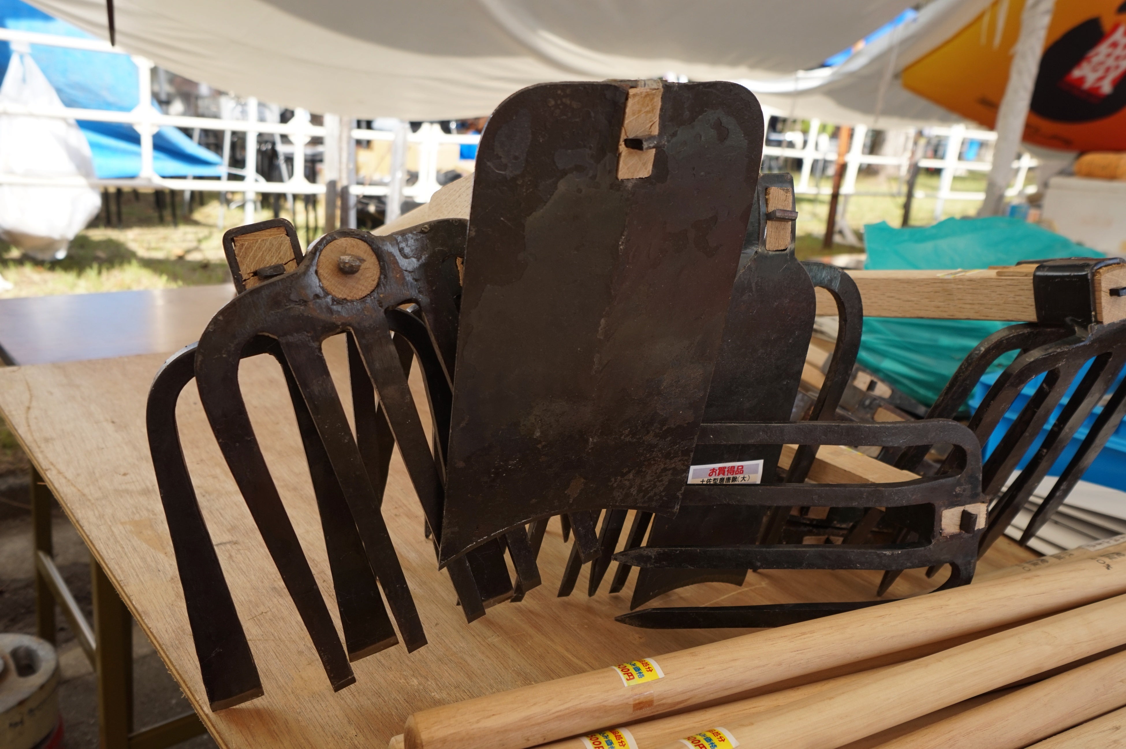 畑を耕す鍬(くわ)も刃物の一種。農家さんが真剣に選んでいました