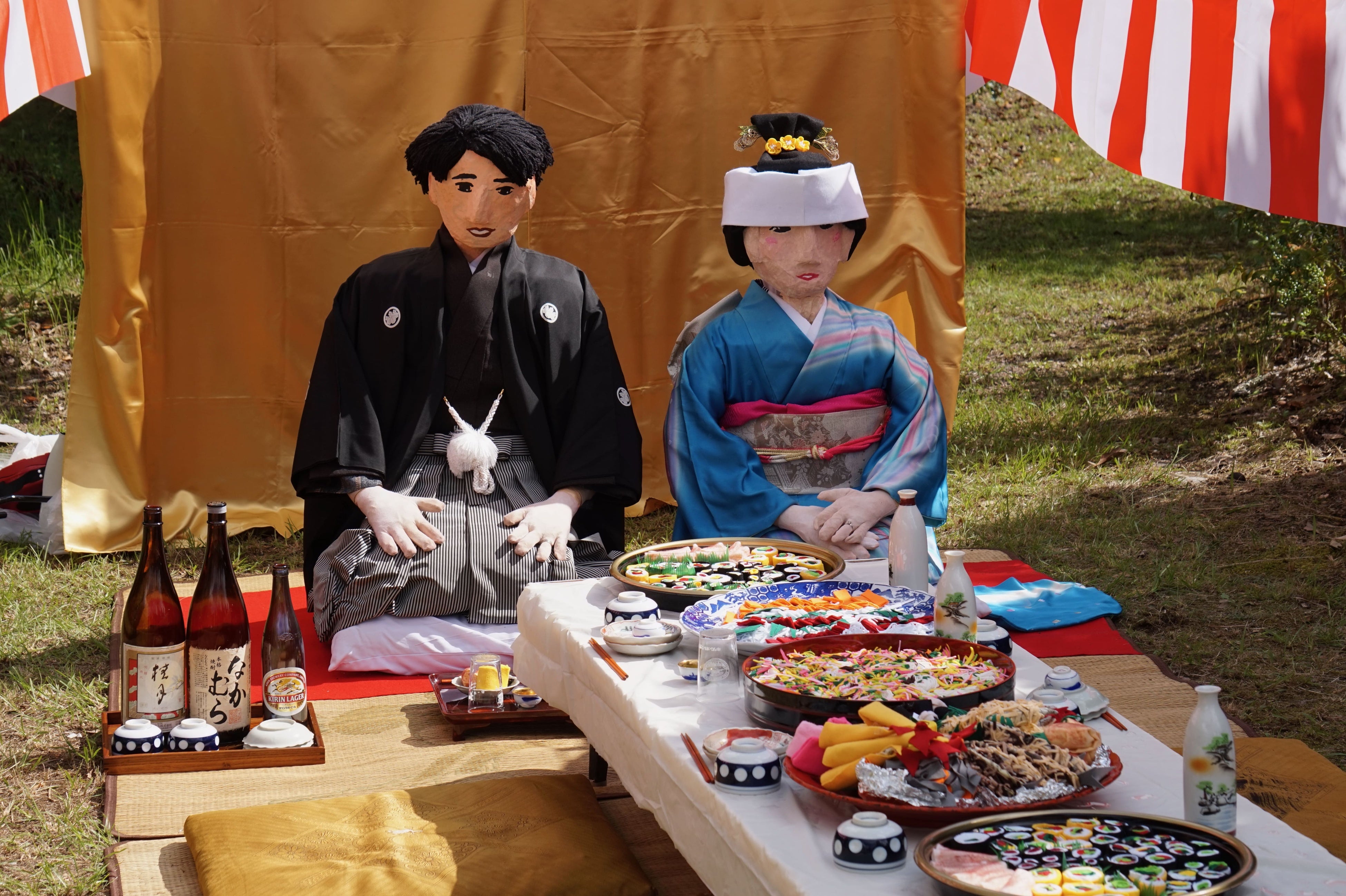 お見合いや縁談で結ばれた二人の結婚式を再現したもので、土佐のおきゃく(宴会)の光景まで細かくつくり込んだ力作となっています。