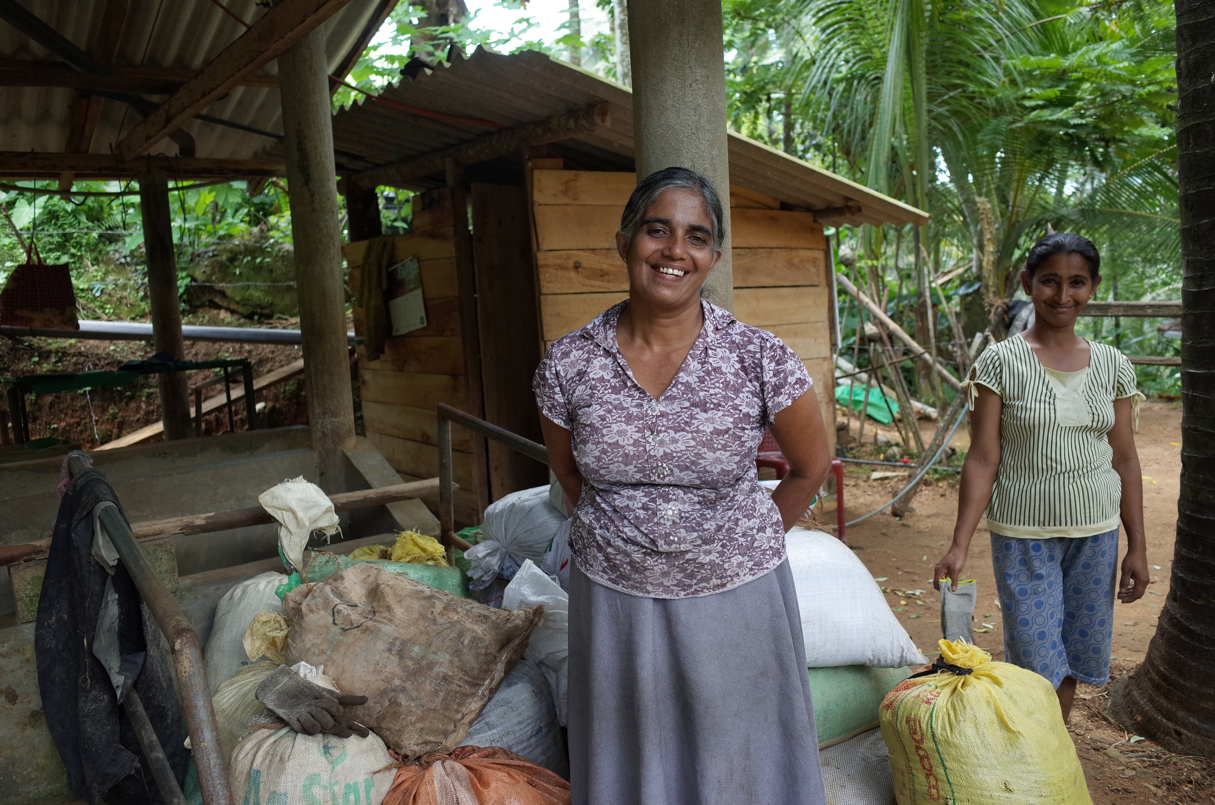 難しいといわれる茶の有機栽培ですが、付加価値を付けて販売することを目指し、2011年、計25世帯の紅茶農家が集まり、小規模紅茶農家グループ「エクサ」を結成しました。牛を飼い、堆肥を作るところから有機栽培への転換を始め、2025年現在は約100世帯に規模を拡大しました。生産者で共有するコンポストセンターを活用し、地域全体へ有機生産が広まるように活動をしています。エクサの農家が出荷する生茶葉は、有機茶葉を専門に扱う近隣の工場でその日のうちに加工され、コロンボの工場でパッキングを行い「有機ルフナ紅茶」として、天然ベルガモットの香料で着香した「有機アールグレイ紅茶」とともに日本へ輸出・販売しています。