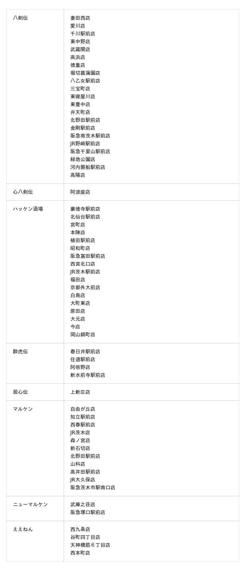 この圧倒的な5日間を絶対にお見逃しなく!お近くの対象店舗(八剣伝・ハッケン酒場・酔虎伝・居心伝・マルケン・ニューマルケン・ええねんのうち61店舗)をご確認の上、ご来店ください。