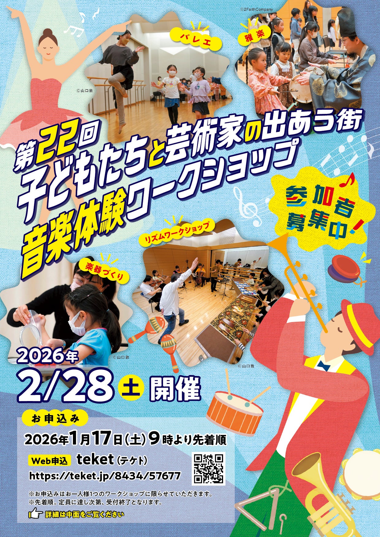 公益財団法人日本フィルハーモニー交響楽団(東京都杉並区、理事長:石塚邦雄、以下日本フィル)が企画するオーケストラコンサートと、音楽体験ワークショップからなる「第22回子どもたちと芸術家の出あう街」(主催:東京都、公益財団法人東京都歴史文化財団、子どもたちと芸術家の出あう街実行委員会)が2026年2月28日(土)に東京芸術劇場で開催されます。