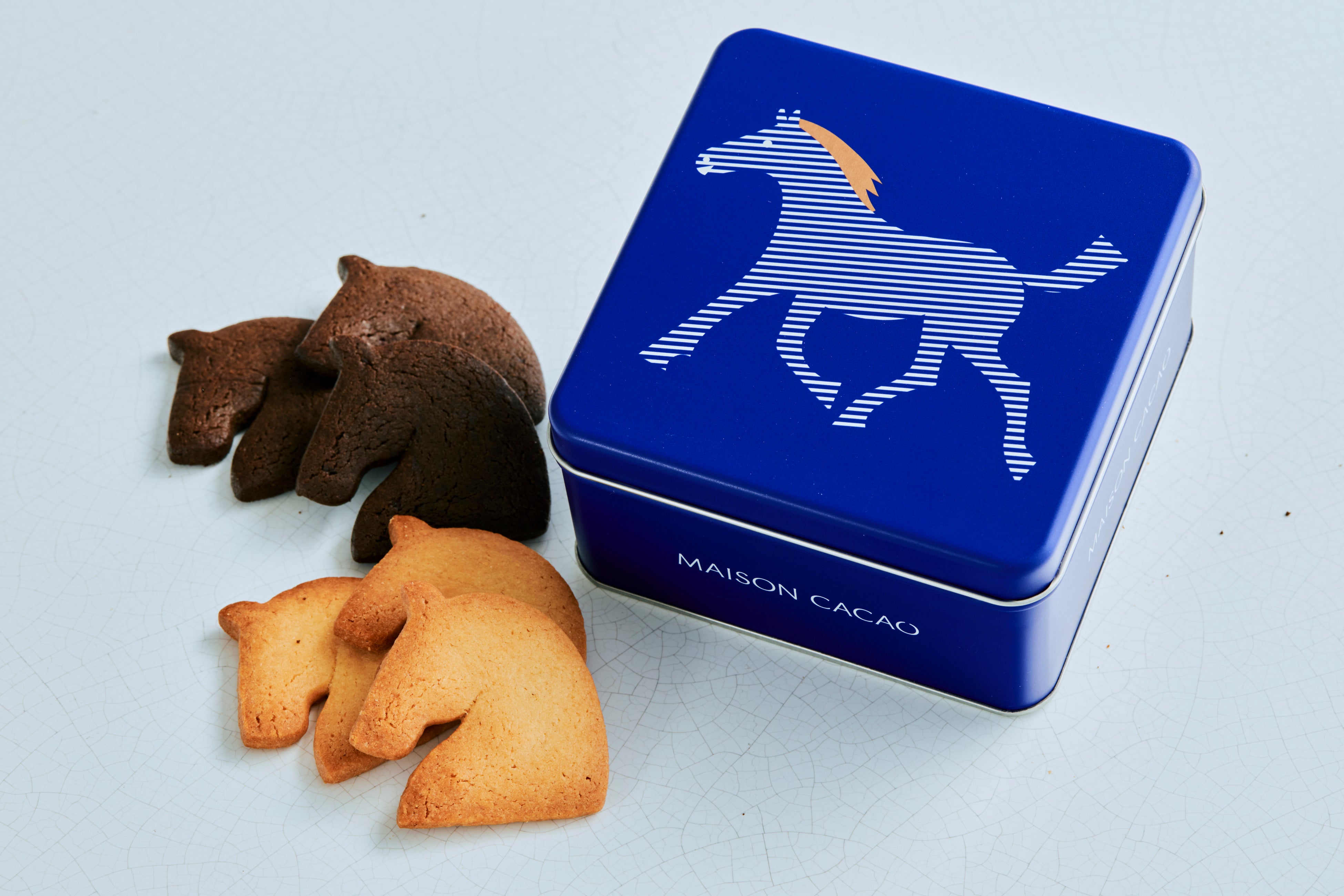 ひと口かじるとサクッと軽やか、次の瞬間には生チョコのように溶けゆく。焼き菓子とは思えない驚きの口どけを実現した、メゾンカカオの人気クッキーです。パッケージには鎌倉ゆかりの"馬"を象徴としてデザインしています。
