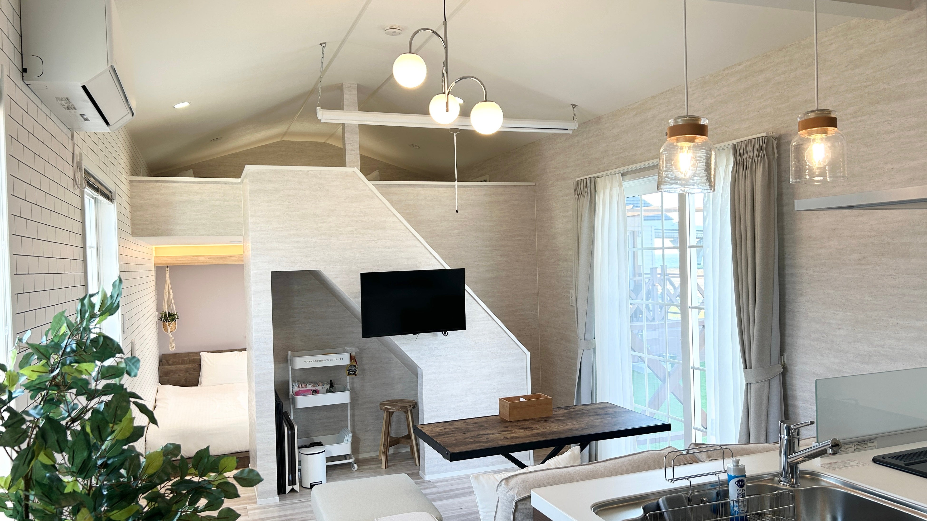 穏やかな海辺の情景をイメージさせ、愛犬とともにゆったりと過ごすのに最適なお部屋