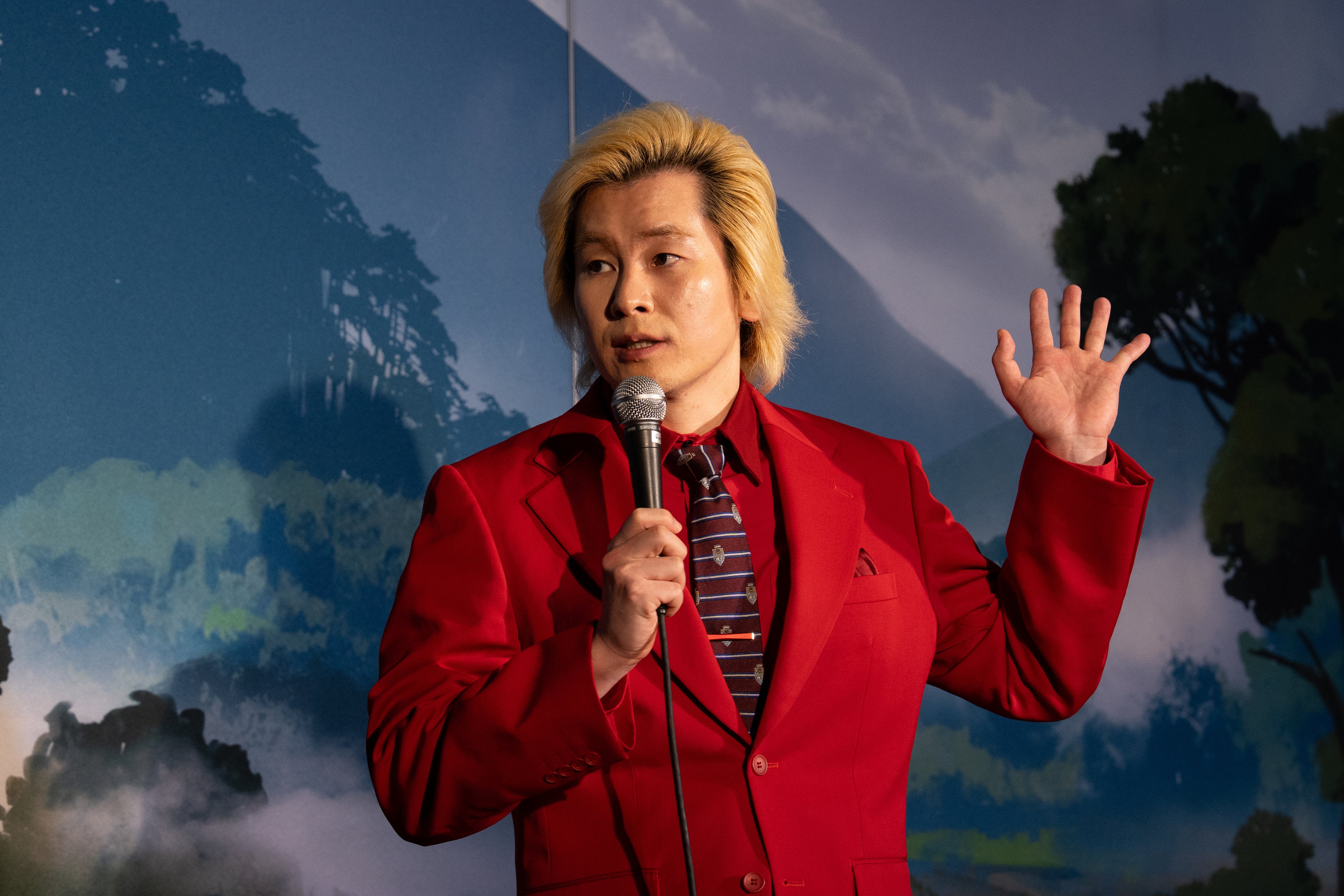 開幕に先立ち、本日2025年11月19日(水)、会場となる森アーツセンターギャラリーにてオープニングセレモニーを実施し、本展覧会の「公式ナビゲーター」を務める、お笑いコンビ・メイプル超合金のカズレーザーさんがおなじみの真っ赤な衣装で登壇。