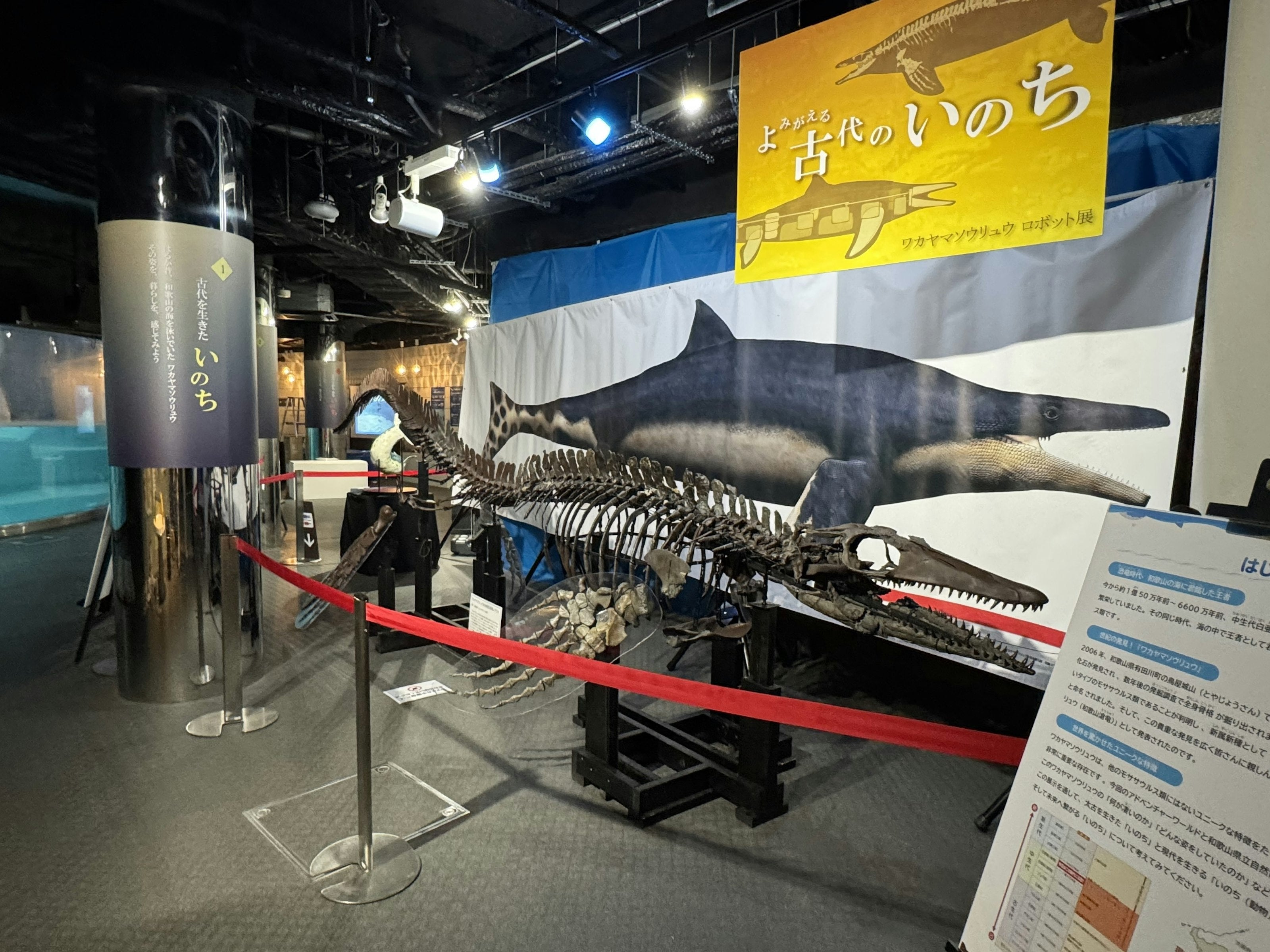 アドベンチャーワールド(和歌山県白浜町)は、2025年10月16日(木)より、和歌山県有田川町で発掘された新種のモササウルス類「ワカヤマソウリュウ」を題材とした企画展「よみがえる古代のいのち ワカヤマソウリュウ企画展」を、パーク内「海獣館」1階にて開催中です。