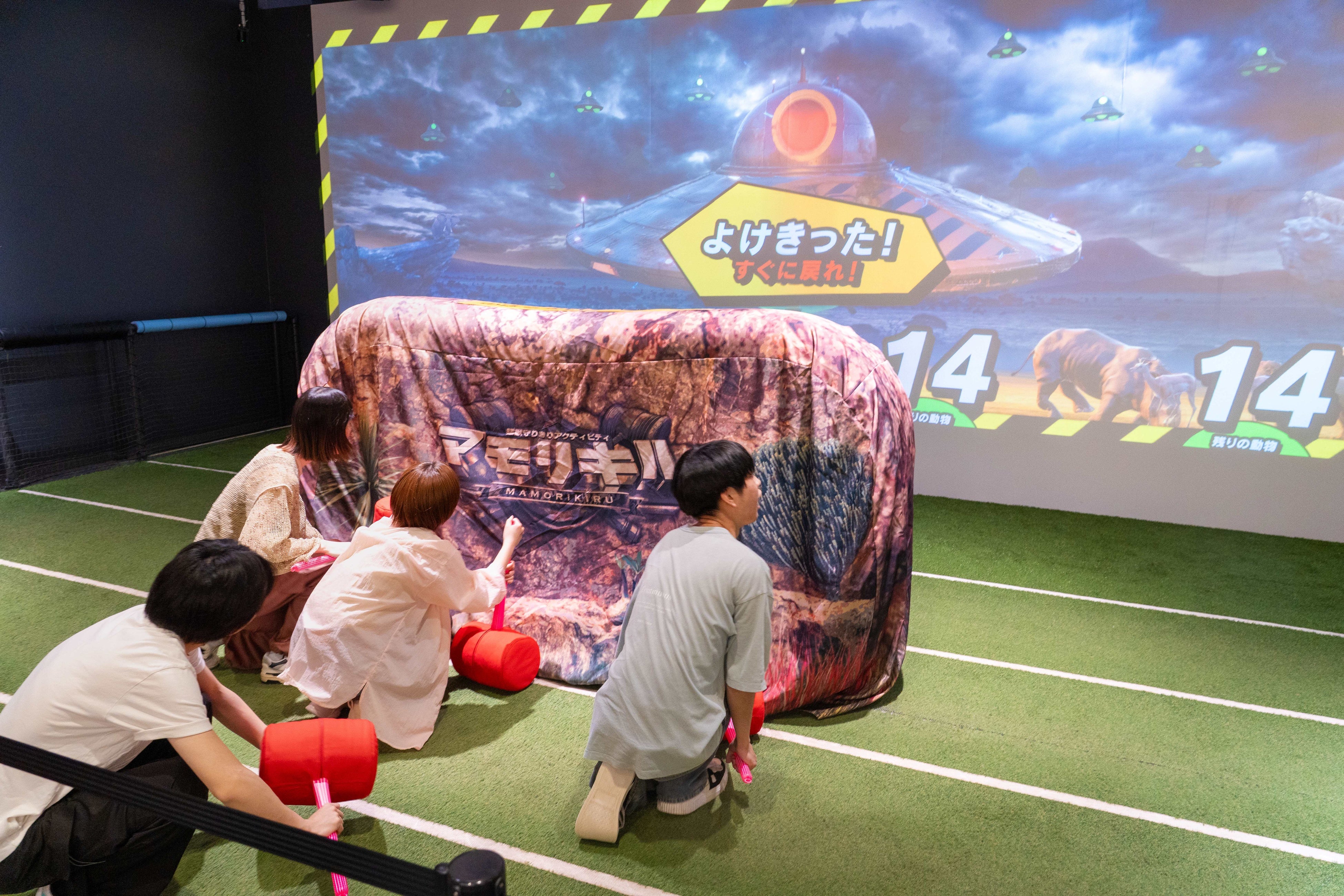 「ニゲキル」「ヨケキル」に続く第3弾!巨大スクリーンの中で、猛獣たちを捕まえに