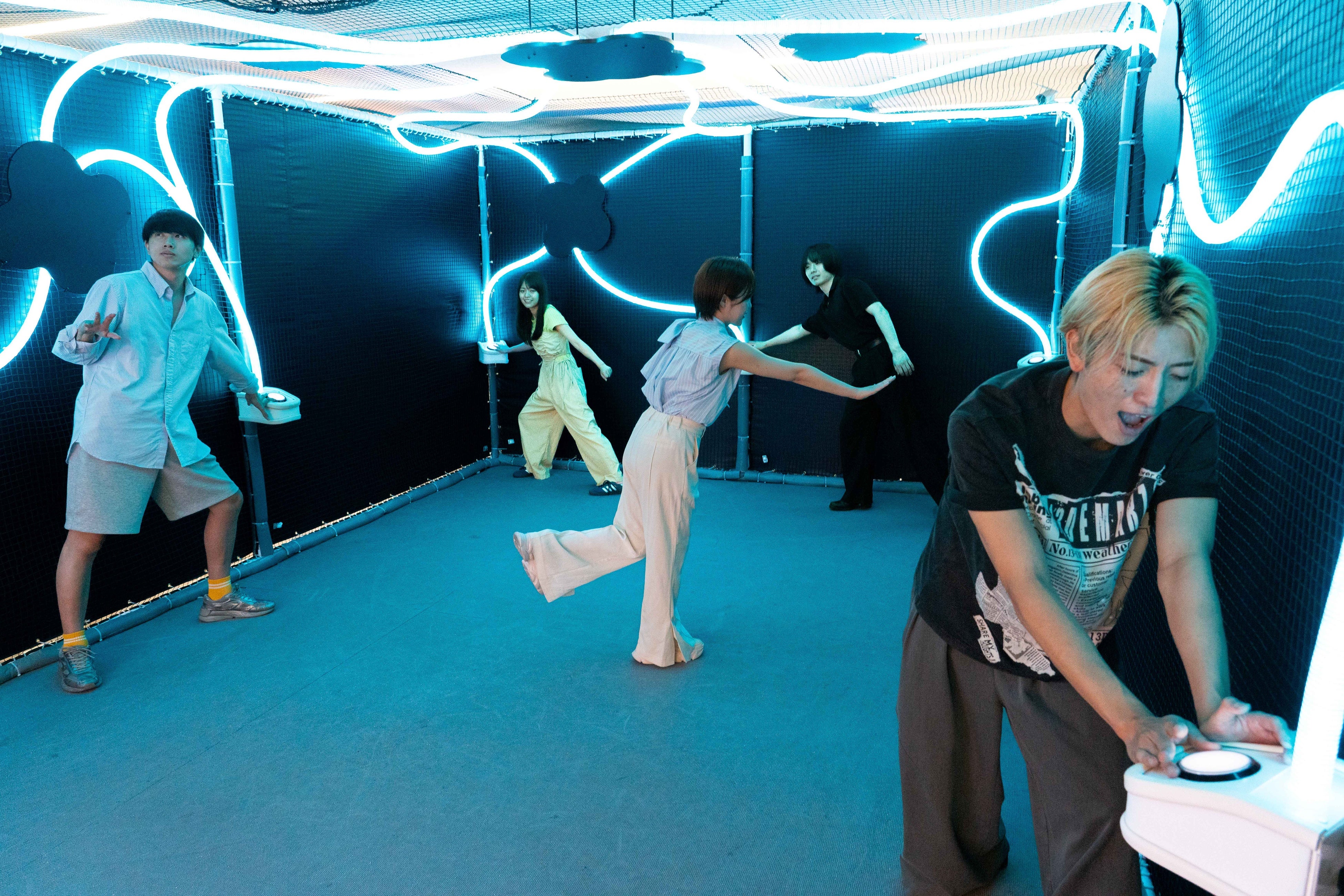 7人同時プレイ可能な協力型アクティビティ!どんどんスピードが速くなるレーザーが落ちないようにボタンをタッチ!みんなで縦横無尽に動き回って協力しよう!