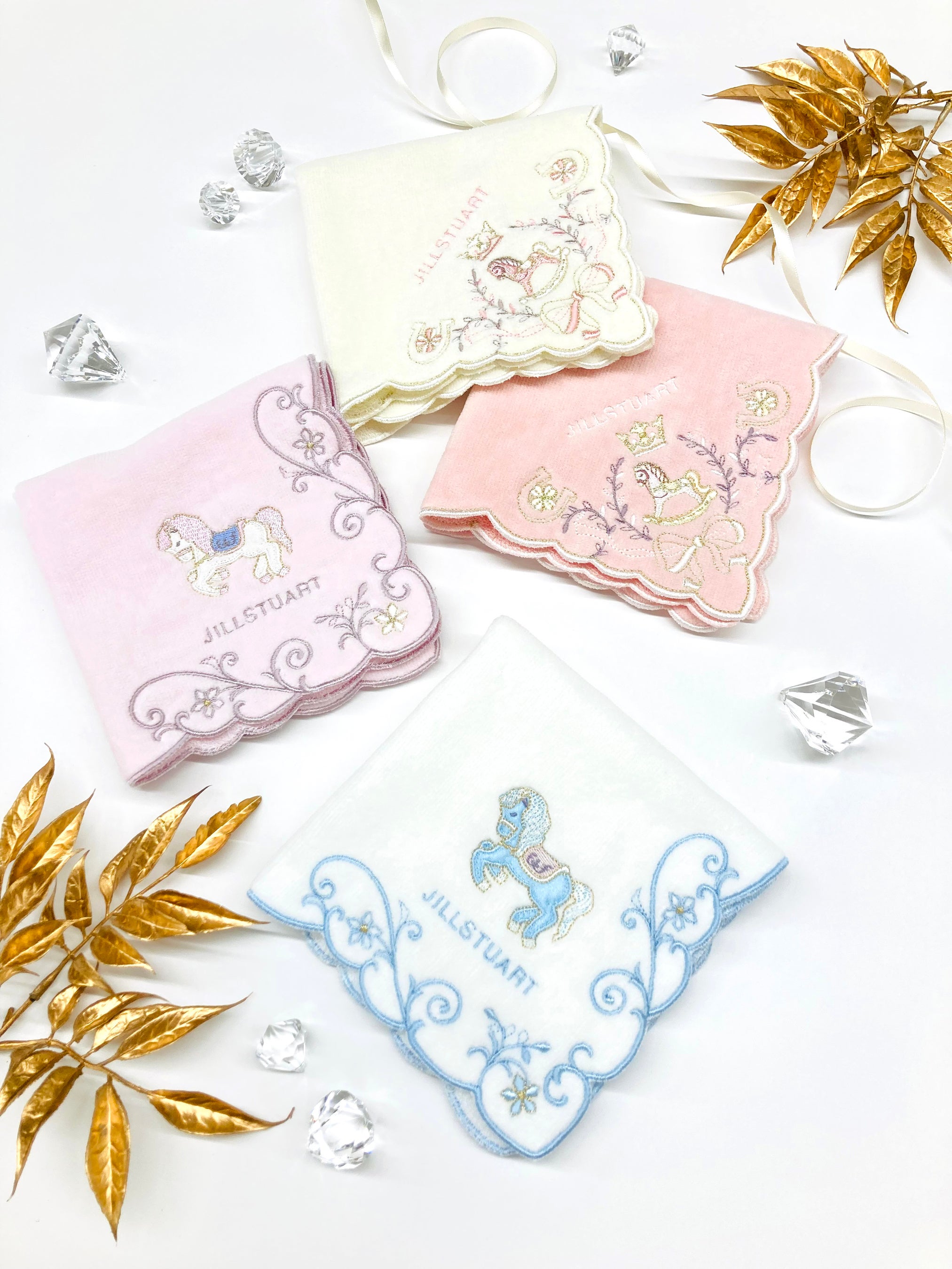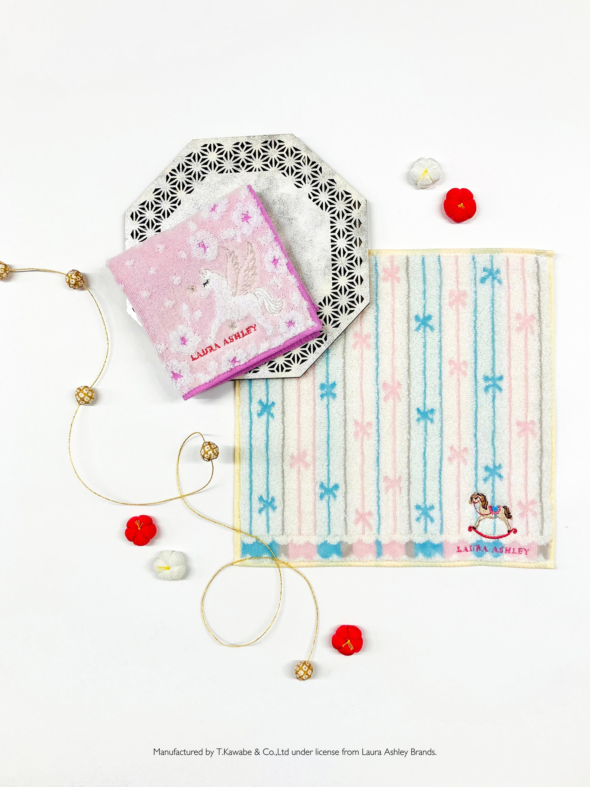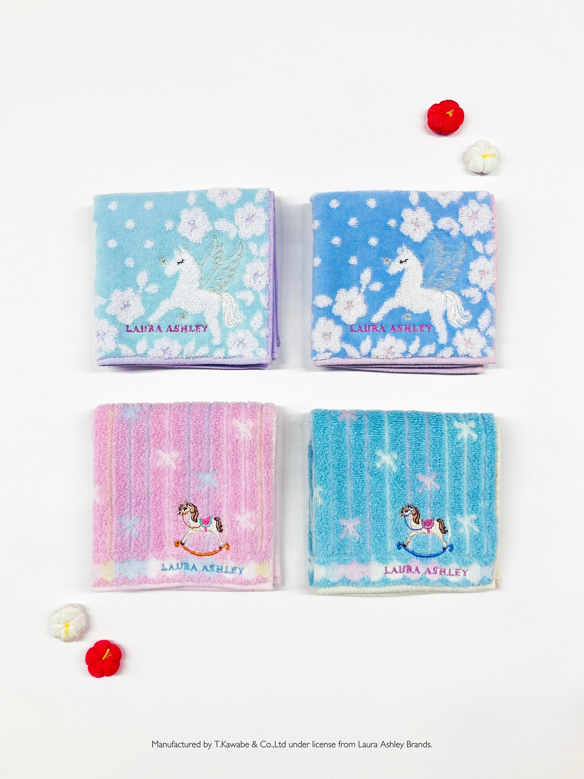 空を駆けるペガサス、優しく揺れる木馬を干支に見立てデザインしたファンタジックなシリーズ。柔らかな肌触りと上品な色合いで、持っているだけで心ときめくタオルハンカチです。
