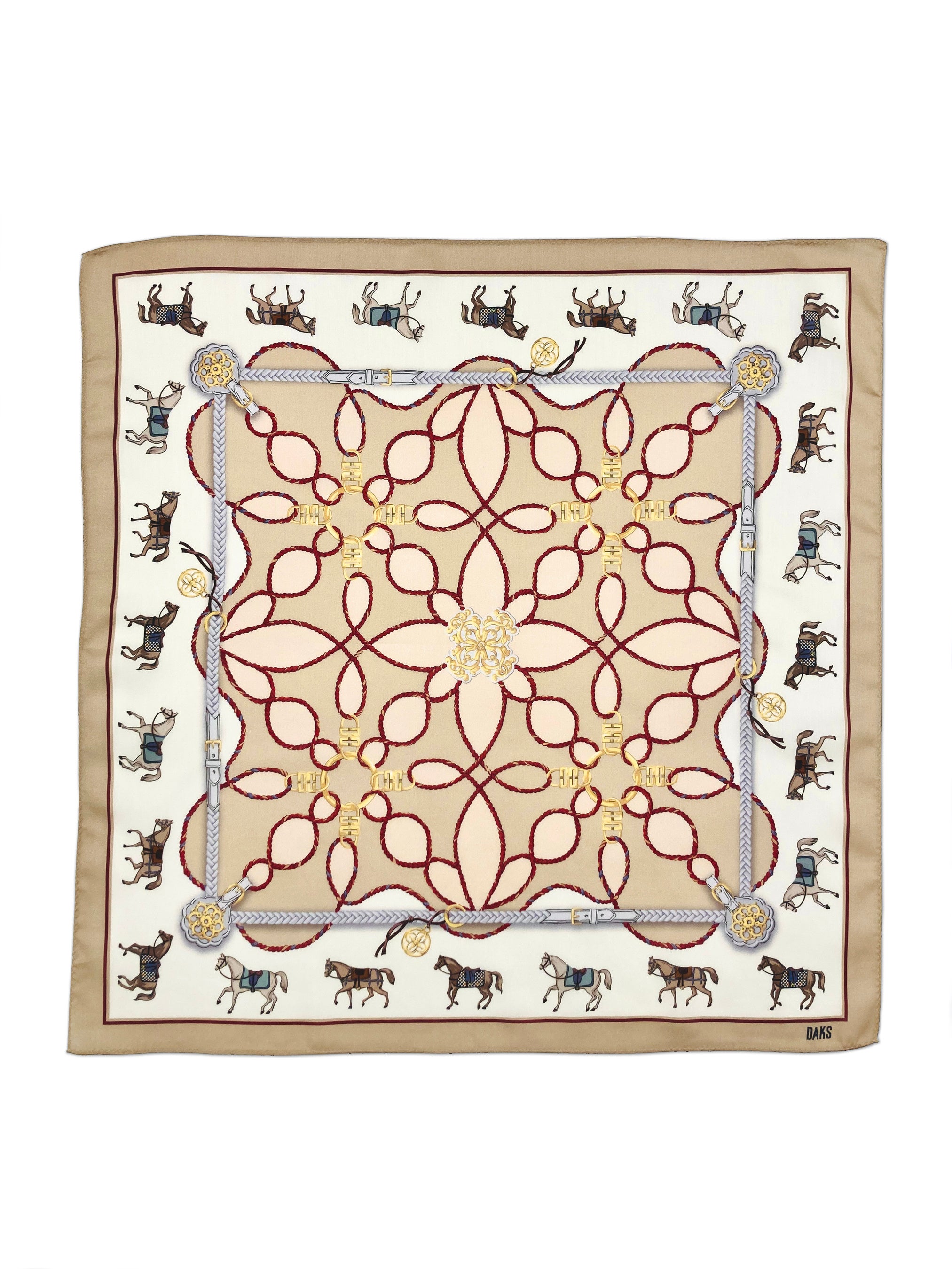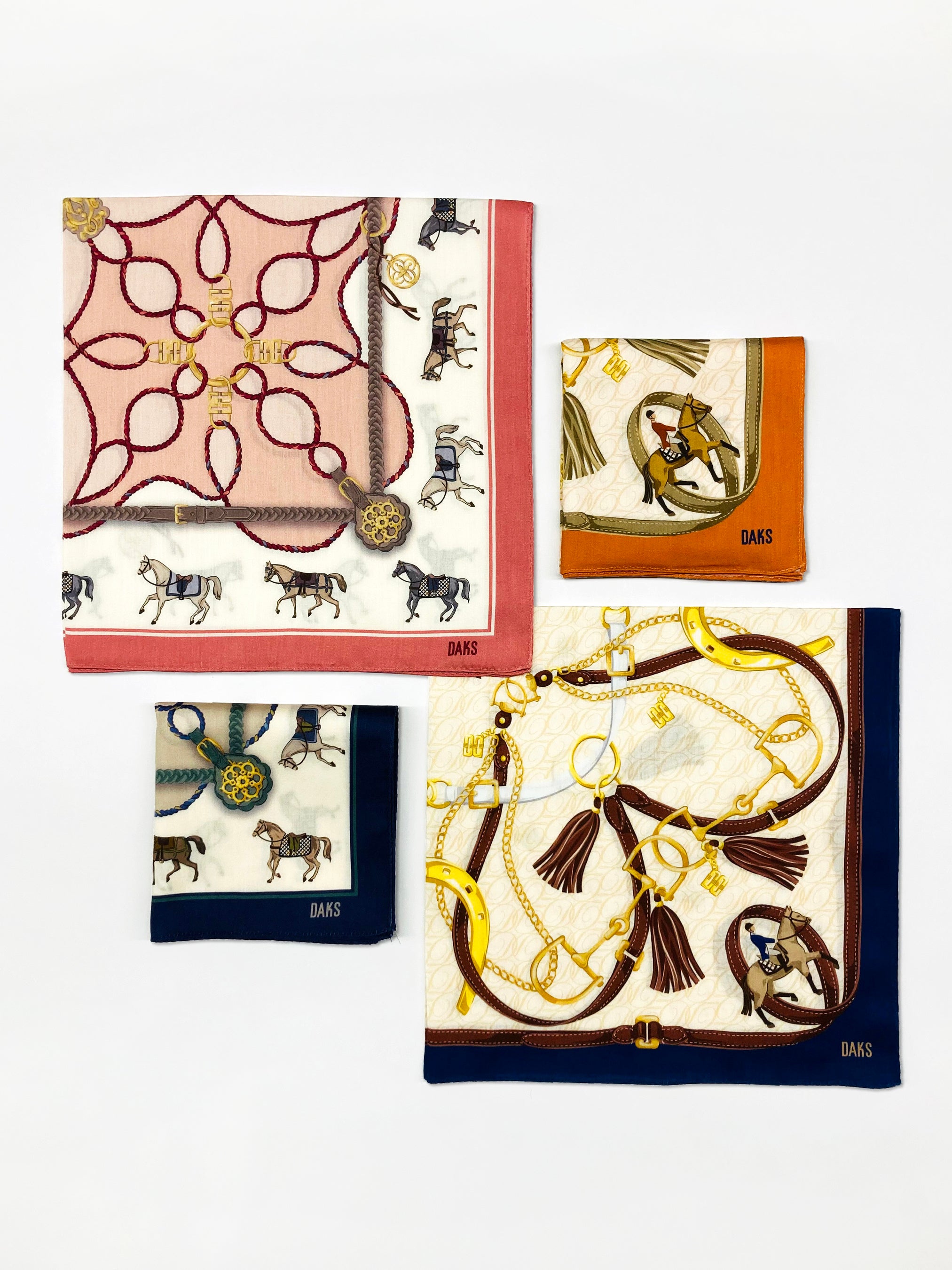 スカーフ調の柄がエレガントな印象のトラッドなハンカチ。