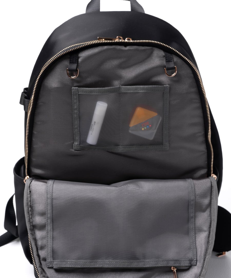 今回のリュックは、日常づかいの中で多くの方が抱える "リュックの中がごちゃつく" というストレスを解消するため、20を超えるポケット構成や配置に徹底してこだわりました。細部にまで工夫を重ね、バッグの中身を整えながら快適に持ち歩ける設計へと進化しています。