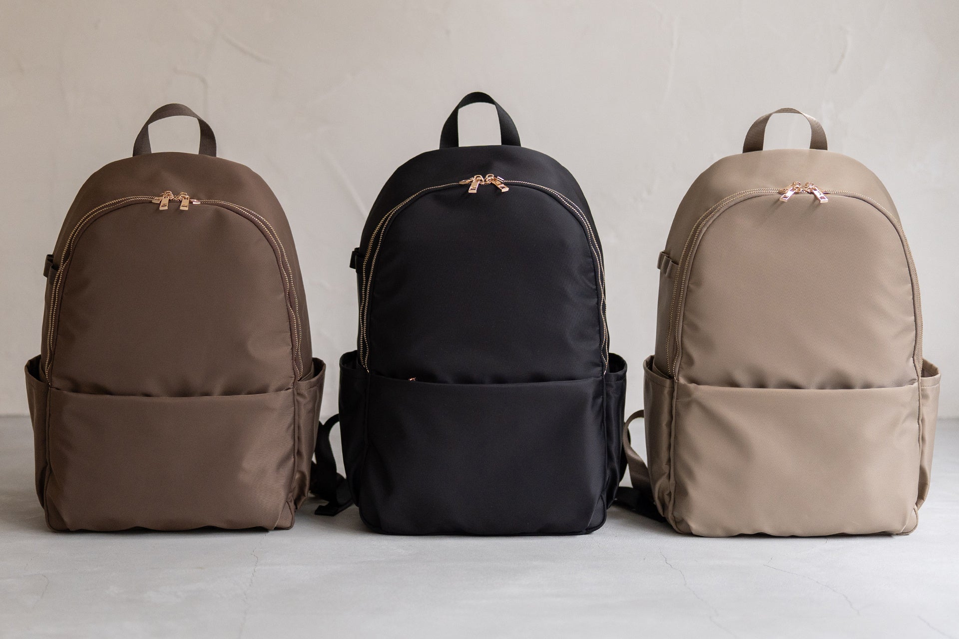 左からトープ、ブラック、グレージュの全3色をラインナップ