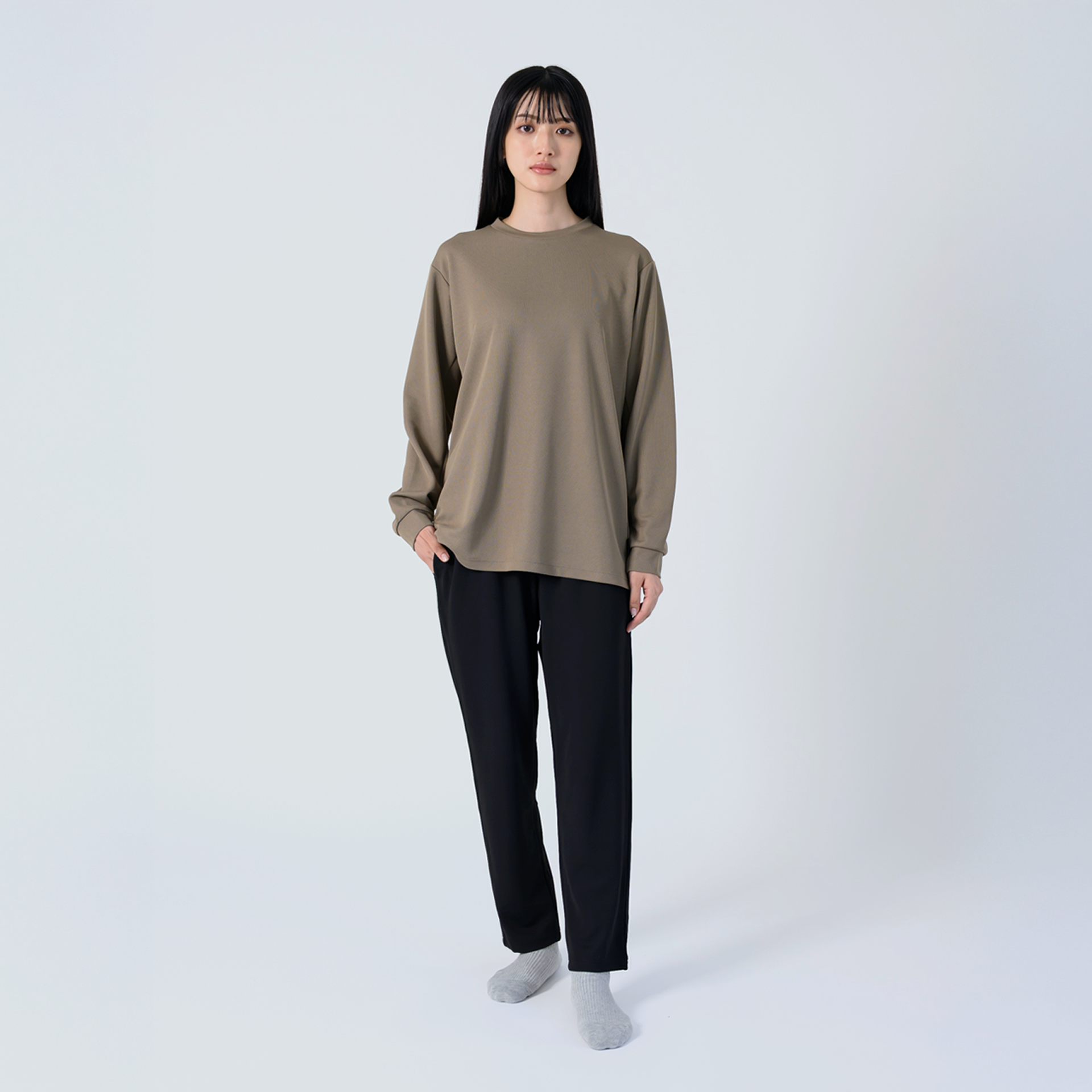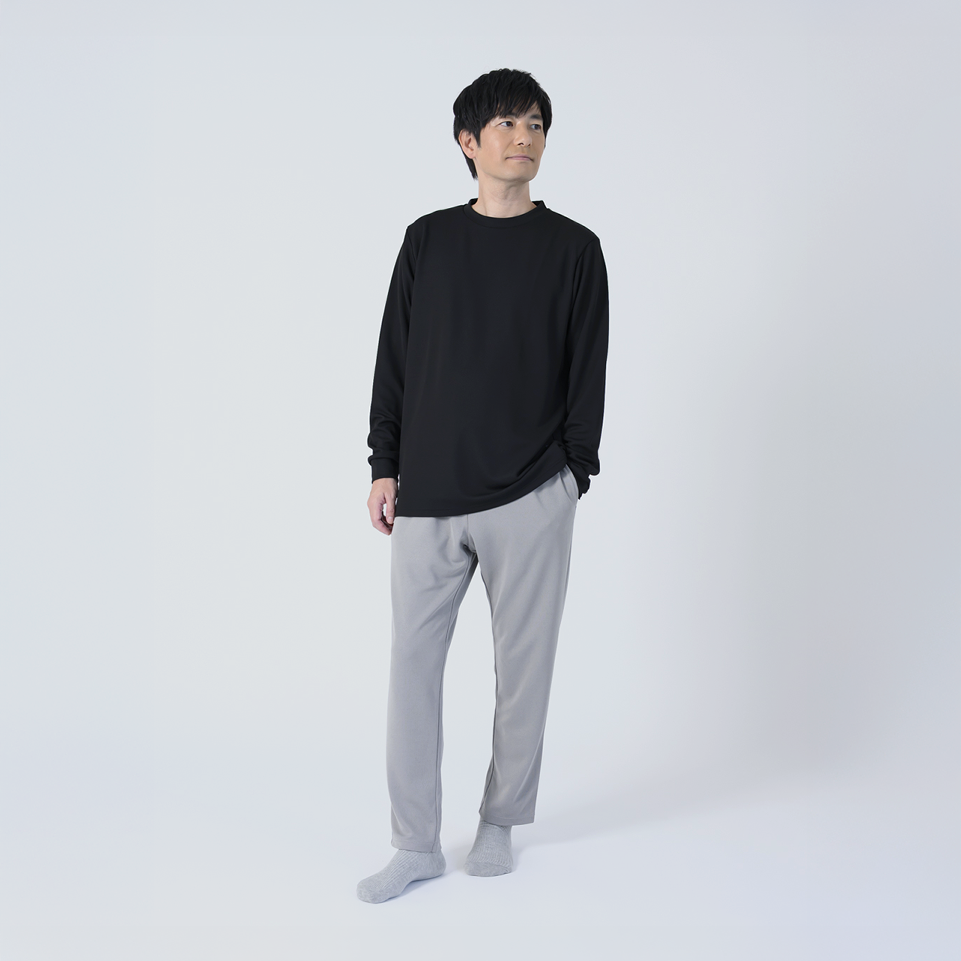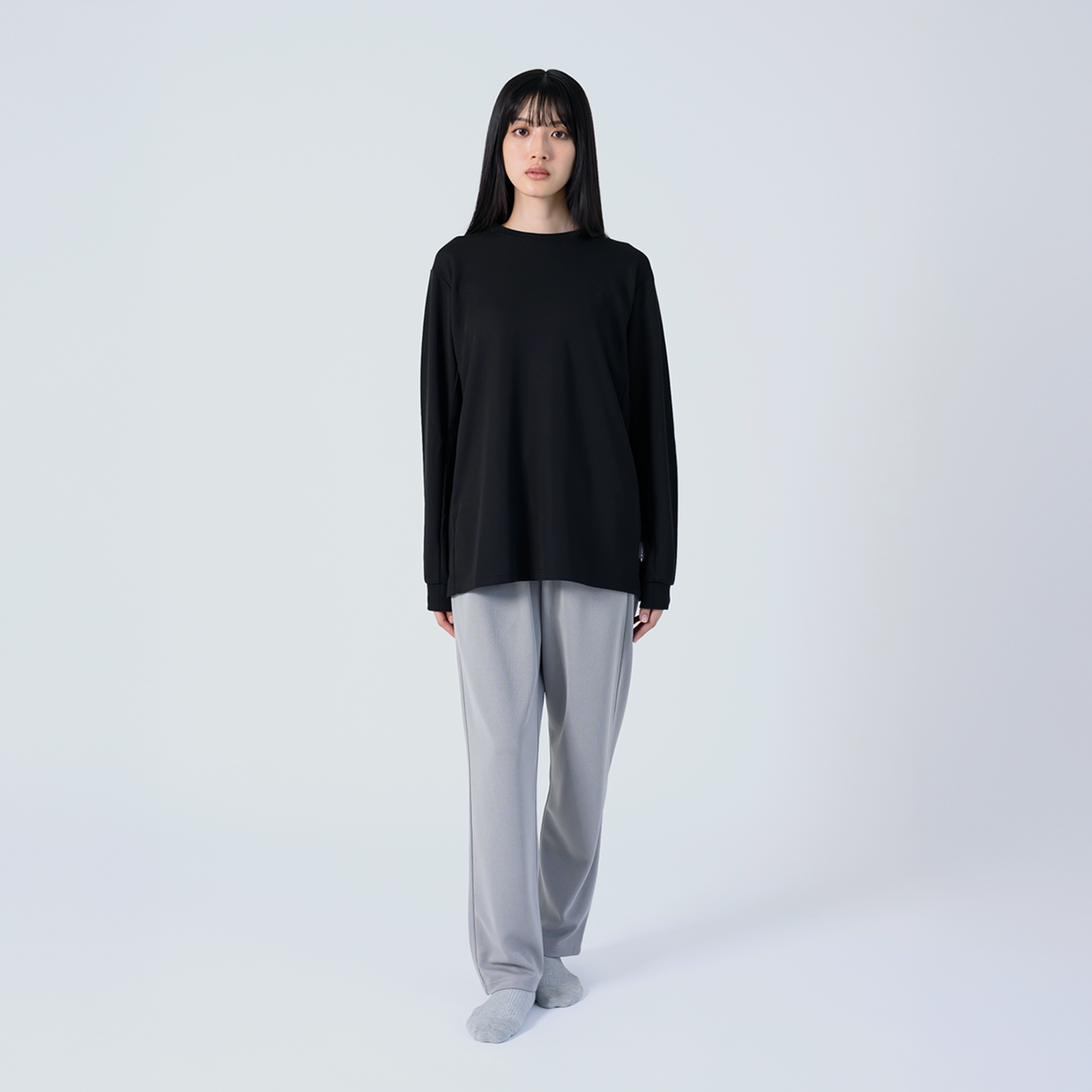 Relaxing Meshシリーズは上下セット単色での着用はもちろん、カラーを組み合わせたスタイリングもおすすめです。・ブラック×グレー