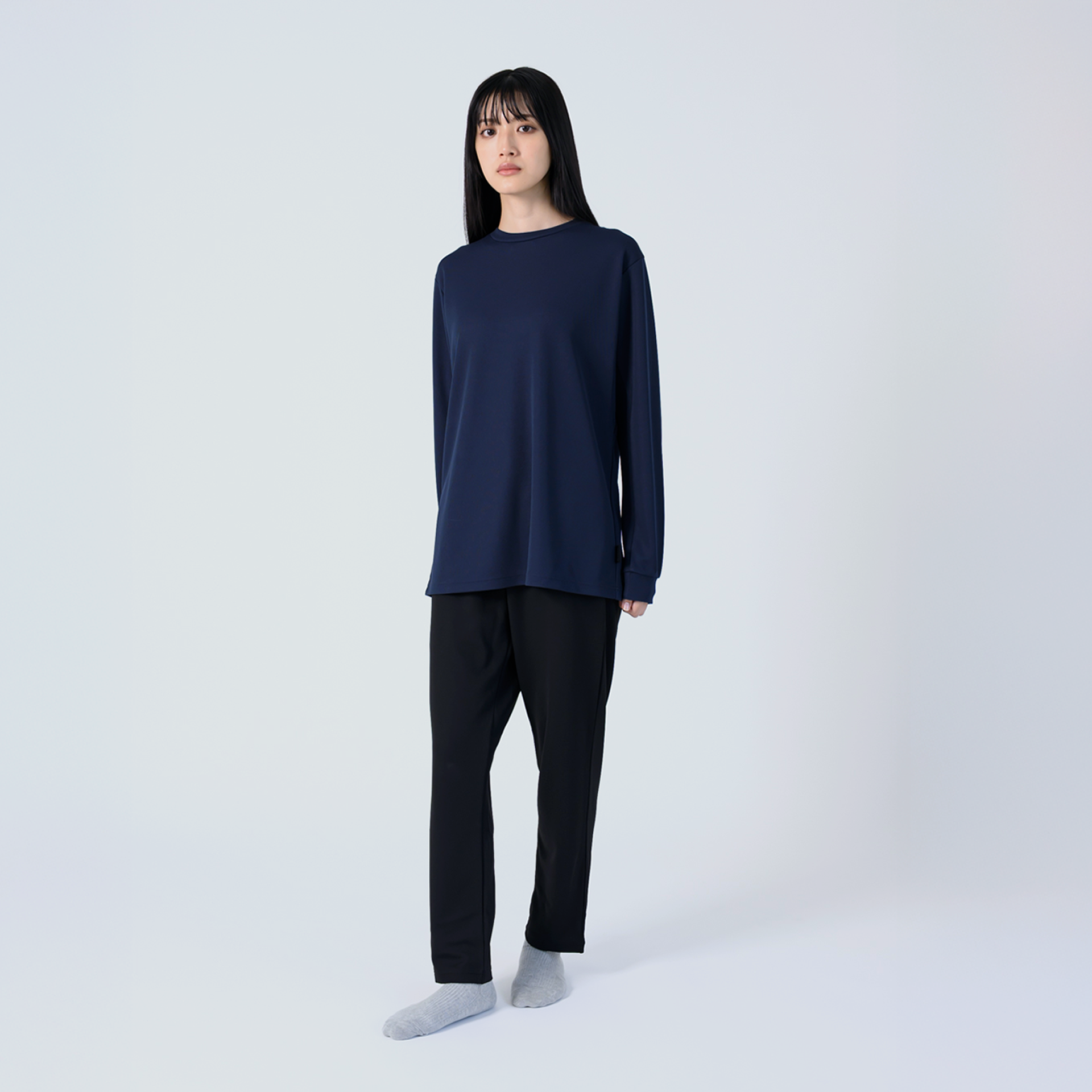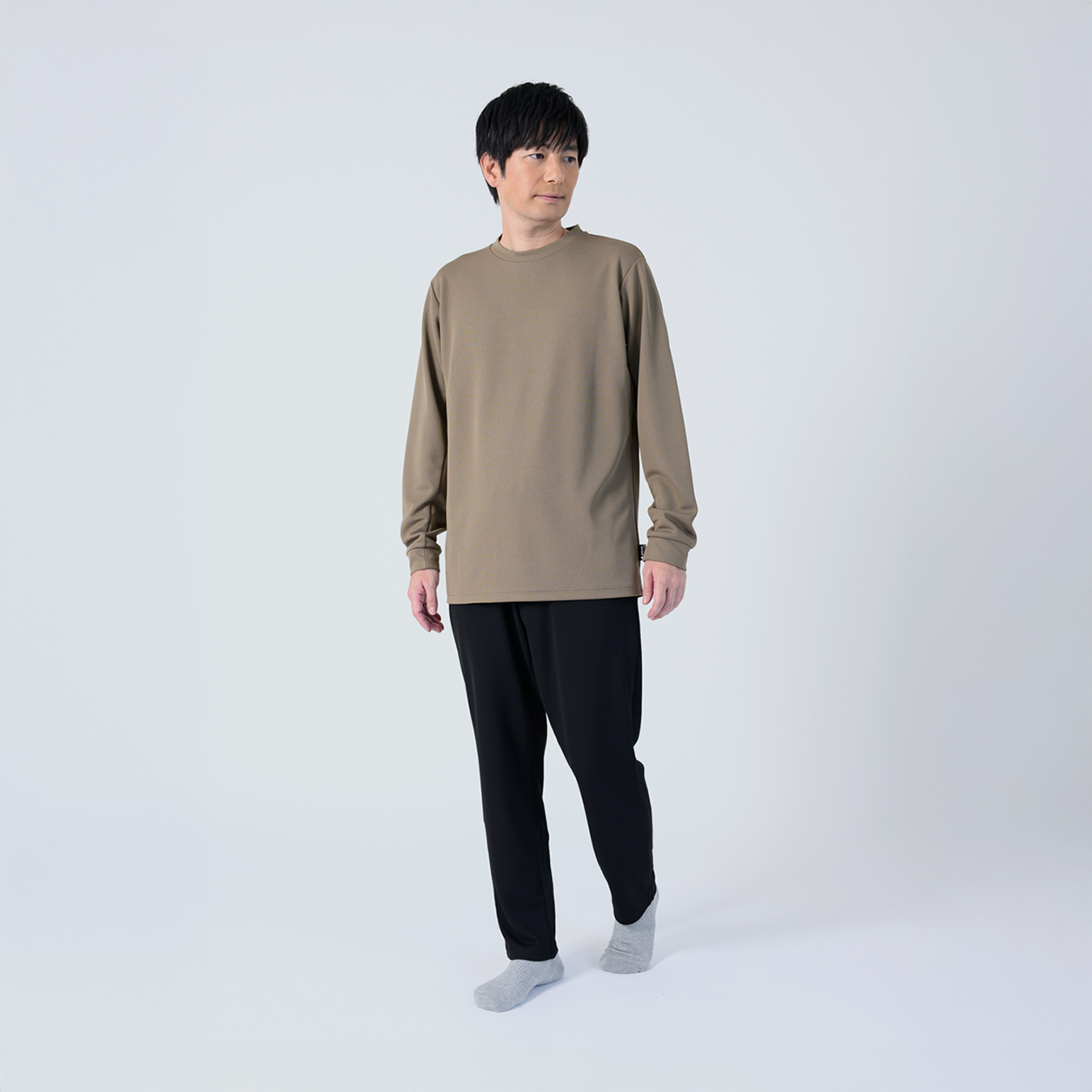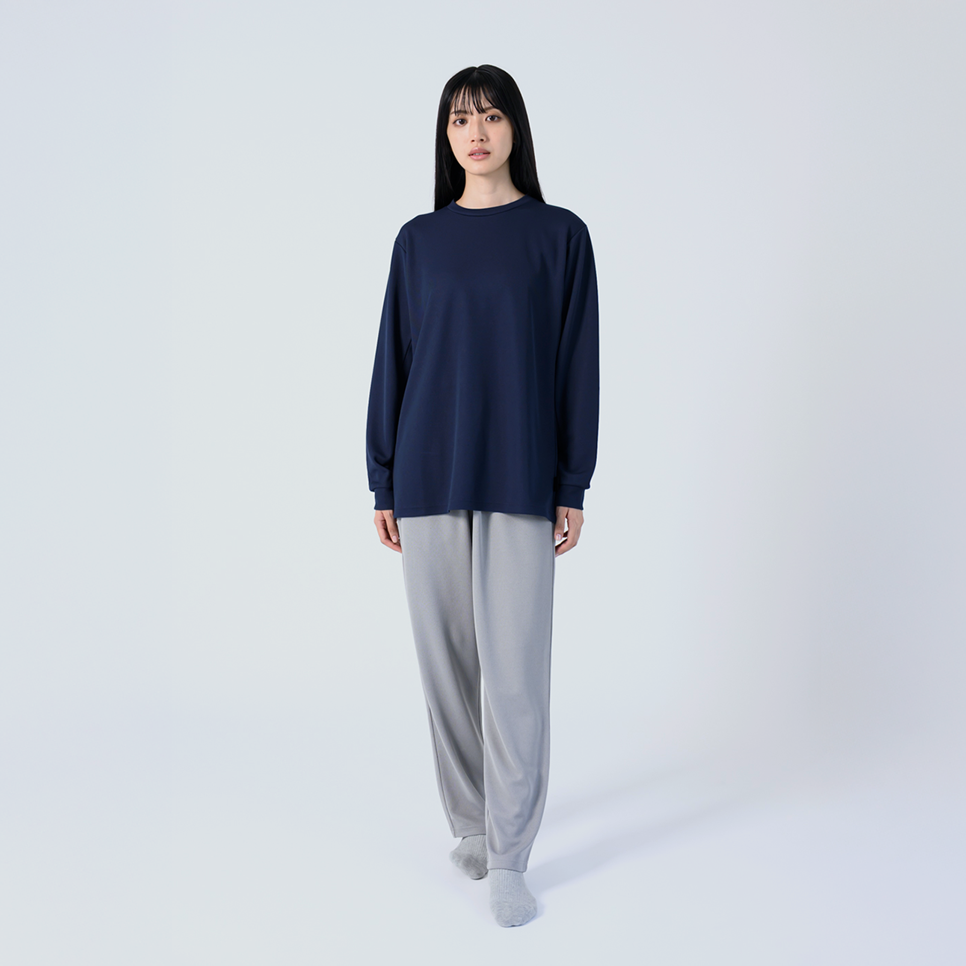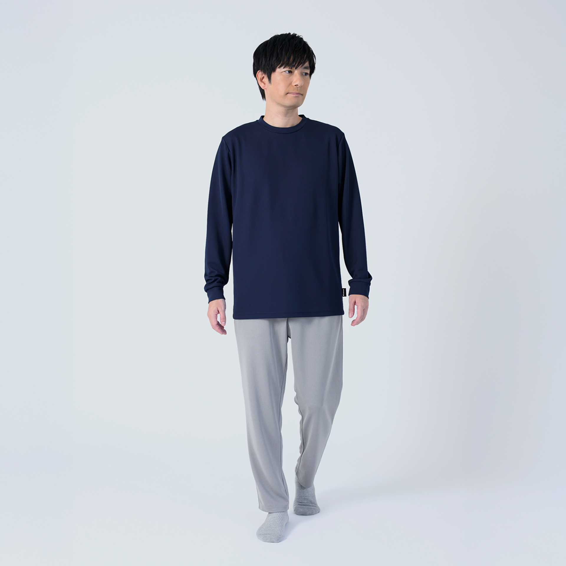 Relaxing Meshシリーズは 2枚合わせの特殊構造の生地を使用しており、保温性に優れた肌触りの良い生地を肌面に、放湿性の高いメッシュ構造を外気面に採用しました。肌寒い季節や睡眠時の体温調節にも役立ち、秋冬シーズンにおすすめの一着です。新カラーのネイビーは落ち着いた大人な印象、グレーは柔らかな色合いでどんなアイテムとも合わせやすく、モカは秋冬らしい温かみのあるカラーです。