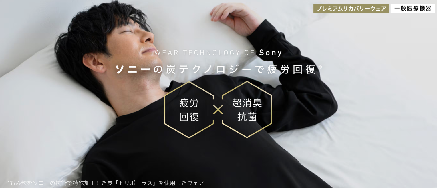 ストレスフルな現代社会において、着るだけで疲れた身体を癒し明日への活力を取り戻す、天然由来の"炭"の力を用いたリカバリーウェア「R WEAR」(アールウェア)を開発しました。炭テクノロジーの有する遠赤外線の血行促進作用により疲労や筋肉のこり等の症状改善に加え、快適な睡眠環境に考慮したデザインと優れた消臭抗菌機能が特長です。「R WEAR」は、一般社団法人日本医療機器工業会が作成した基準を満たしており、「家庭用遠赤外線血行促進用衣」として一般医療機器の届出を完了しており、安心してご利用いただけます。