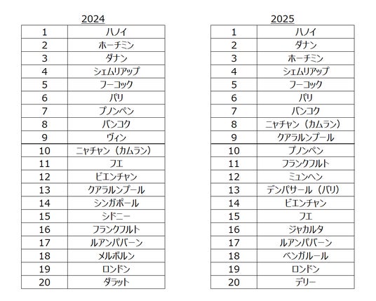 ベトナム国内都市に加え、ベトナムを経由してさらに第三国へ向かう渡航需要も引き続き伸長しました。ヨーロッパ方面では、フランクフルトが16位から11位へ上昇したほか、パリは順位こそ横ばいながら前年の約3倍の発券数を記録し、ロンドンも2倍以上へと大幅に増加しました。さらに、2024年10月よりハノイ/ホーチミン発で新たに運航を開始したミュンヘンは、初年度ながら12位にランクインし、欧州路線の拡充が需要増加に直結していることがうかがえます。