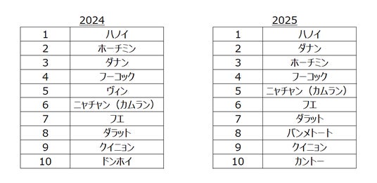 ダナンが前年比約60%増で2位に躍進 ニャチャンも人気がさらに高まり、バンメトートは初のトップ10入り