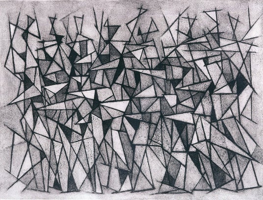 日本で銅版画に取り組む芸術家が急速に増加するのは、1950年代に入ってからです。材料や道具、学ぶ場が限られたなかで果敢に技法を取得し、独自の表現へと昇華させた銅版画家が多くいました。当館収蔵作家の中から、そうした銅版画界の黎明期に新しい表現を求めた菅野陽(すがの よう・1919-1995)と浜田知明(はまだ ちめい・1917-2018)を紹介します。