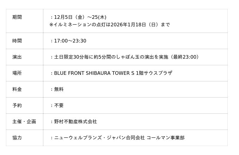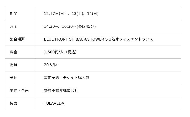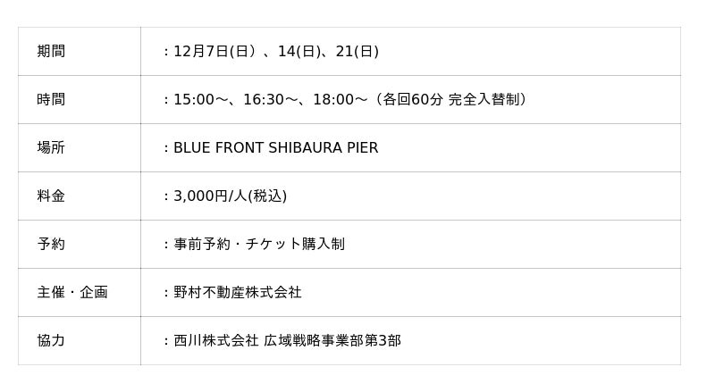 ※詳細については11月27日(木)以降、BLUE FRONT SHIBAURA公式 WEB サイトにてご確認ください。