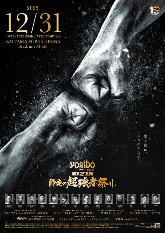 快適すぎて動けなくなる魔法のソファ「Yogibo(ヨギボー)」を展開する株式会社Yogibo(代表取締役社長:井形剛士、以下「Yogibo」)は、2025年12月31日(水)に開催される、記念すべき10周年イヤーの国内最大級の総合格闘技イベント「RIZIN 師走の超強者祭り」に冠協賛いたします。RIZINとは、コロナ禍の困難な時期を共に乗り越え、長年にわたり深いパートナーシップを築いてきました。2025年はRIZINにとって節目となる10周年。その記念すべき年を締めくくる大晦日大会を、Yogiboとしても全力で盛り上げたいと考えています。この特別な日にふさわしい"10周年の集大成"となる熱狂を、RIZINとともに創り上げてまいります。