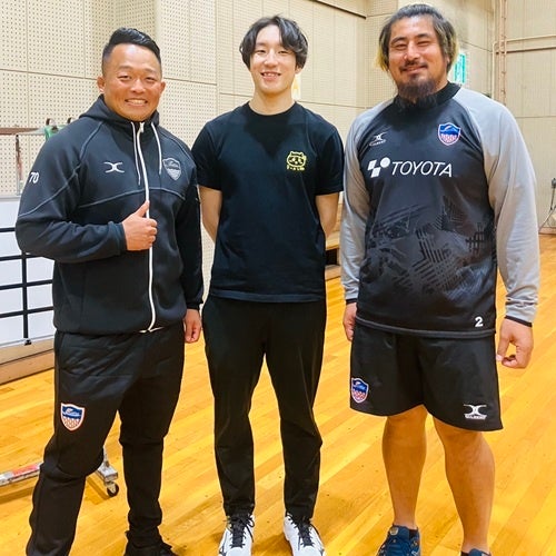 (写真/右:深村亮太選手、左:松岡大和選手、中央:ファクトリージャパングループ整体師兼スポーツトレーナー和田大貴)