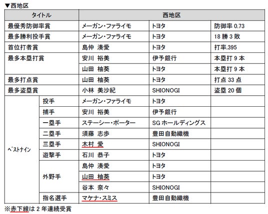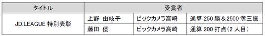 …JD.LEAGUEおよび日本ソフトボール界に対して多大な貢献が見られた選手、団体等に贈られます。